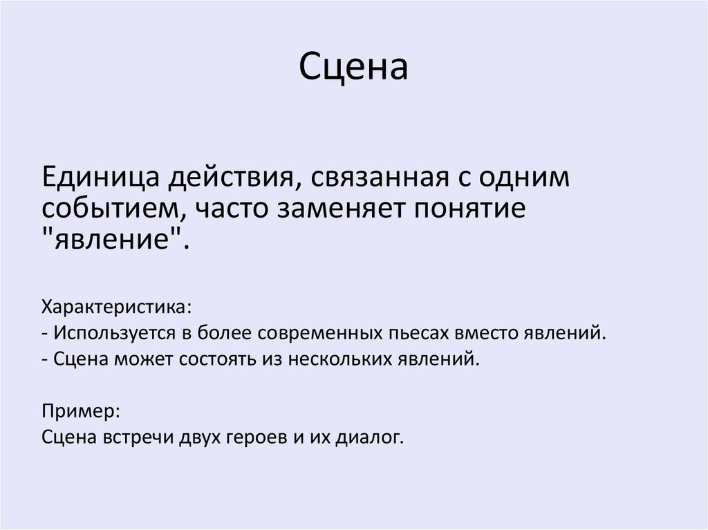 - Сцена может состоять из нескольких явлений.
