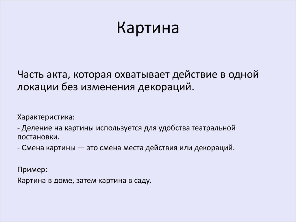 - Смена картины — это смена места действия или декораций.