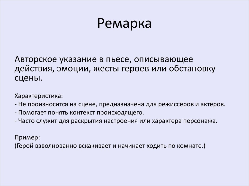 РемаркаАвторское указание в пьесе, описывающее