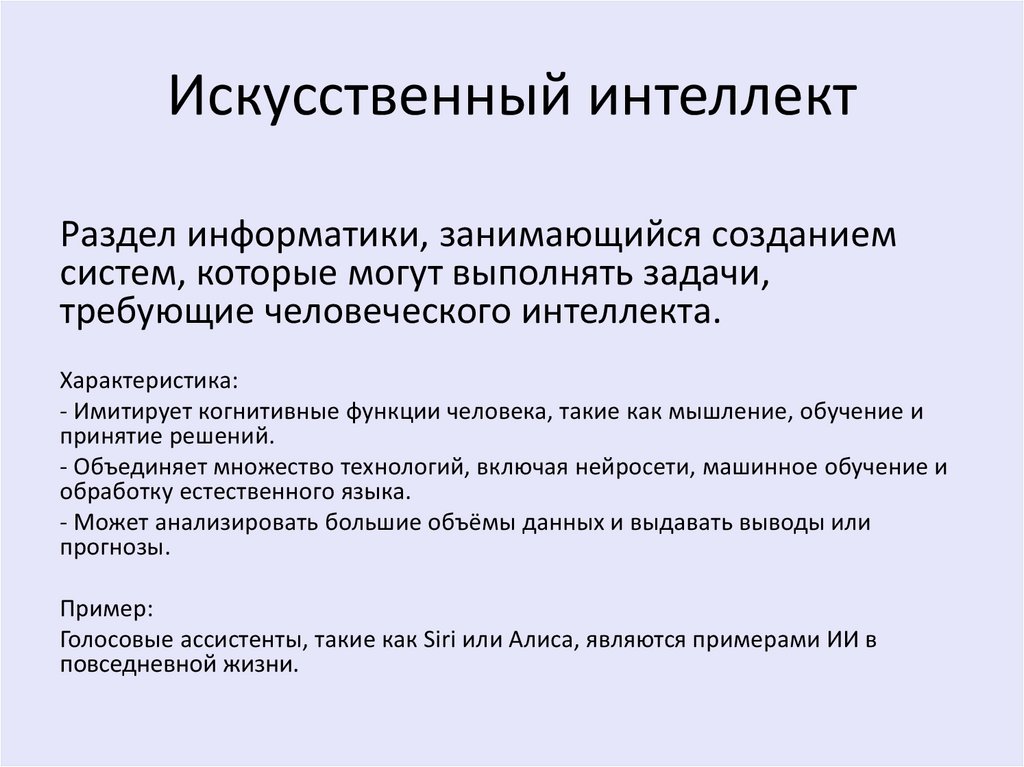 Искусственный интеллектРаздел информатики, занимающийся созданием