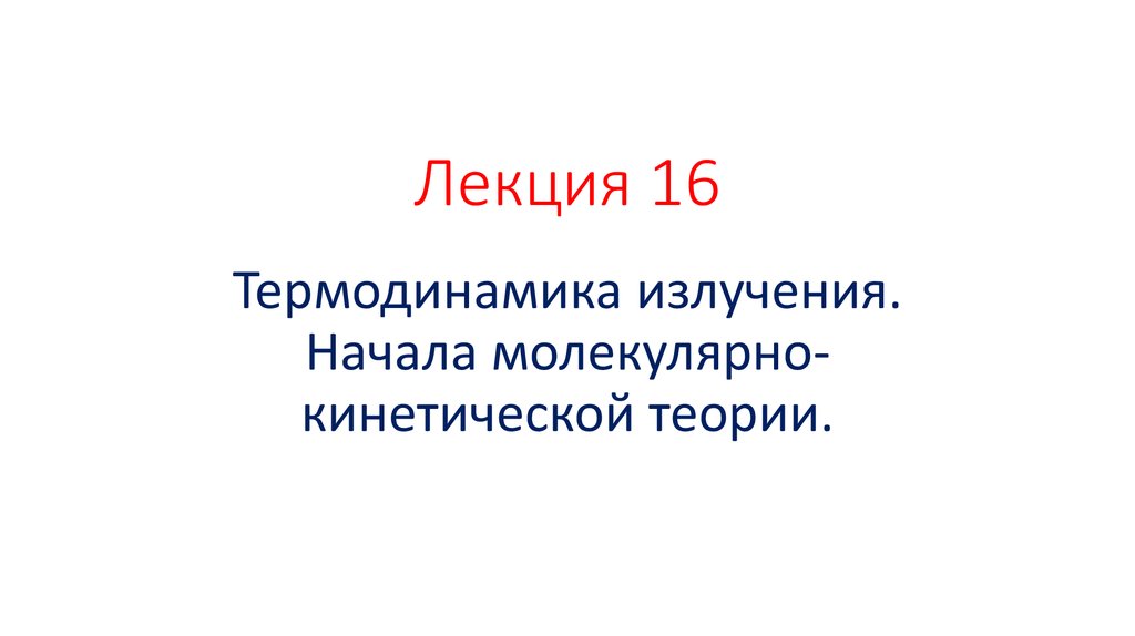 Термодинамика излучения. Начала молекулярнокинетической теории
