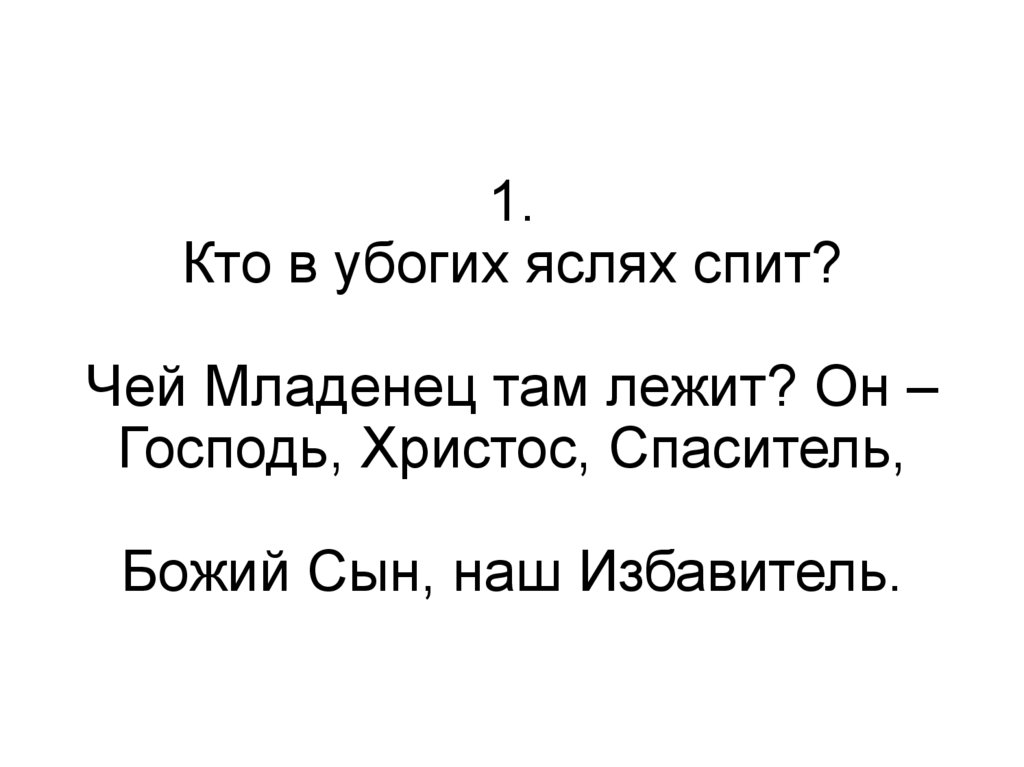 1. 1. Кто в убогих яслях спит? Чей Младенец там лежит? Он – Господь, Христос, Спаситель, Божий Сын, наш Избавитель.