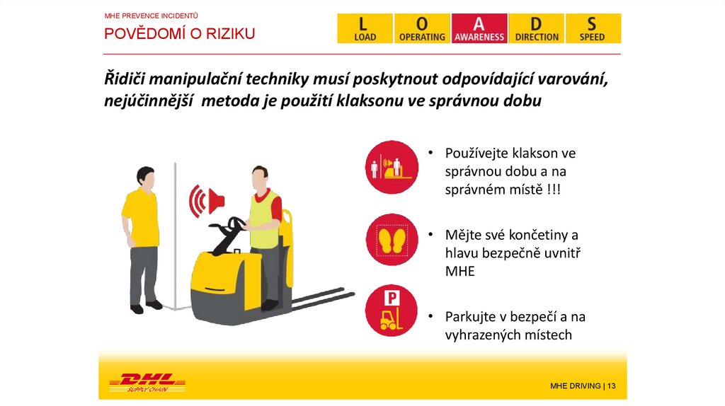 LOADS – BEZPEČNOSTNÍ PRAVIDLA PRO VZVSpolečnost DSC vyvinula program Defenzivní Jízda (LOADS) na podporu vize a