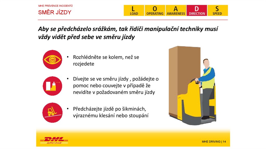 • Direction (Směr) – Udržování přehledu a viditelnosti při používání vozíku v provozu