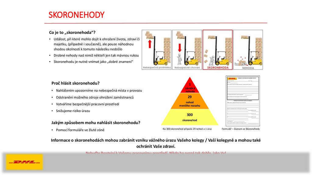 Informace o skoronehodách mohou zabránit vzniku vážného úrazu Vašeho kolegy / Vaší kolegyně a mohou také