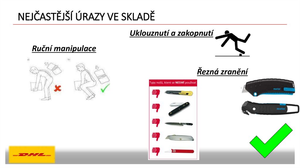 NEJČASTĚJŠÍ ÚRAZY VE SKLADĚUklouznutí a zakopnutí