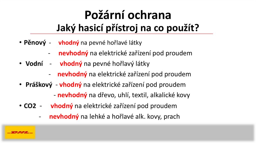 • CO2 - vhodný na elektrické zařízení pod proudem
