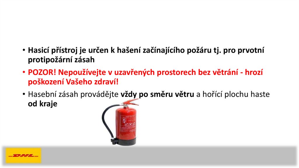 • Hasicí přístroj je určen k hašení začínajícího požáru tj. pro prvotníprotipožární zásah