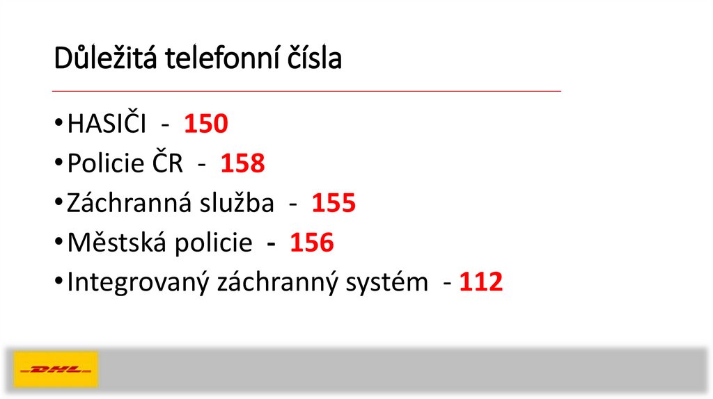 Důležitá telefonní čísla• HASIČI - 150