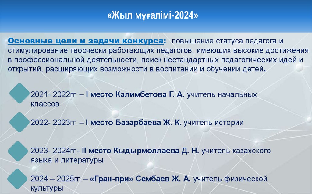 Итоги конкурса «Жыл мұғалімі-2024»«ГРАН ПРИ» городского этапа конкурса «Жыл мұғалімі-2024»
