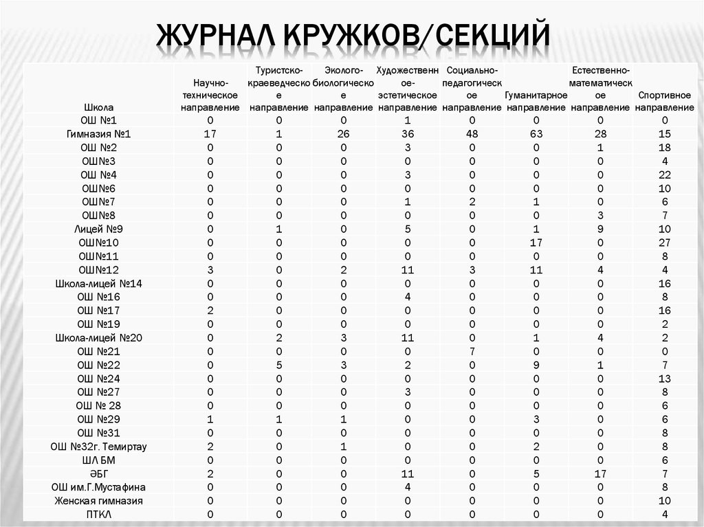 Гидропоника; Шахмат ; Нейросети ИИ; Основы права; Робототехника; Интеллектум; Алхимик; Тоғызқұмалақ; "Пять