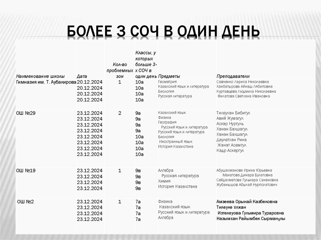 БОЛЕЕ 3 СОЧ В ОДИН ДЕНЬНаименование школы