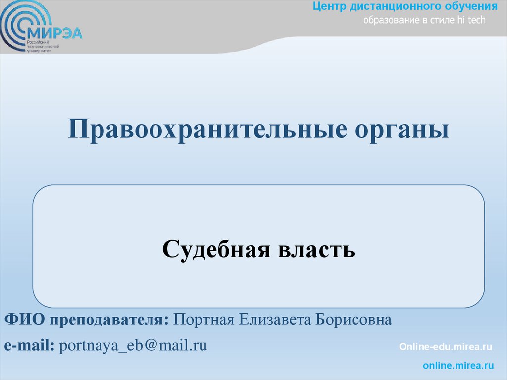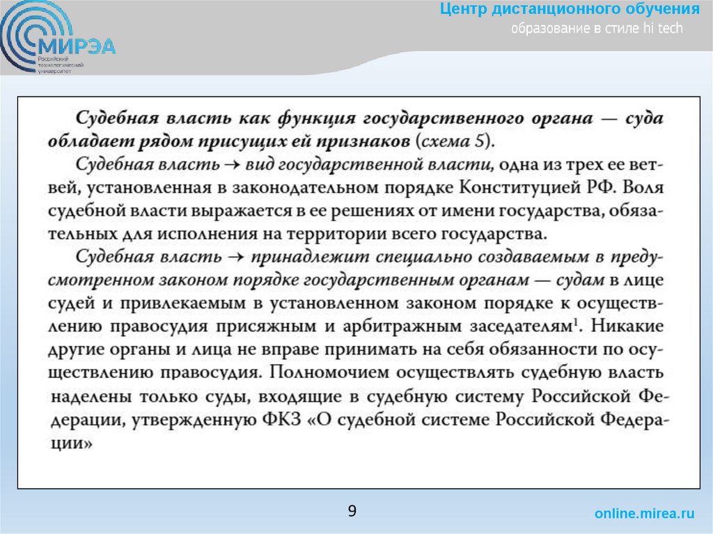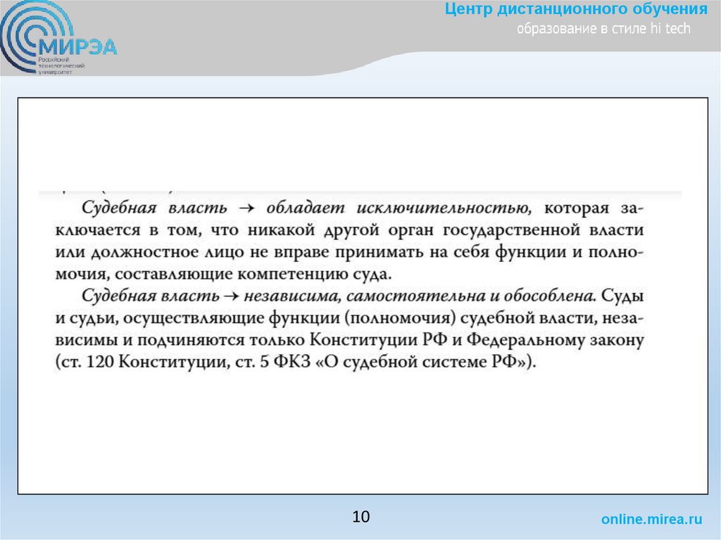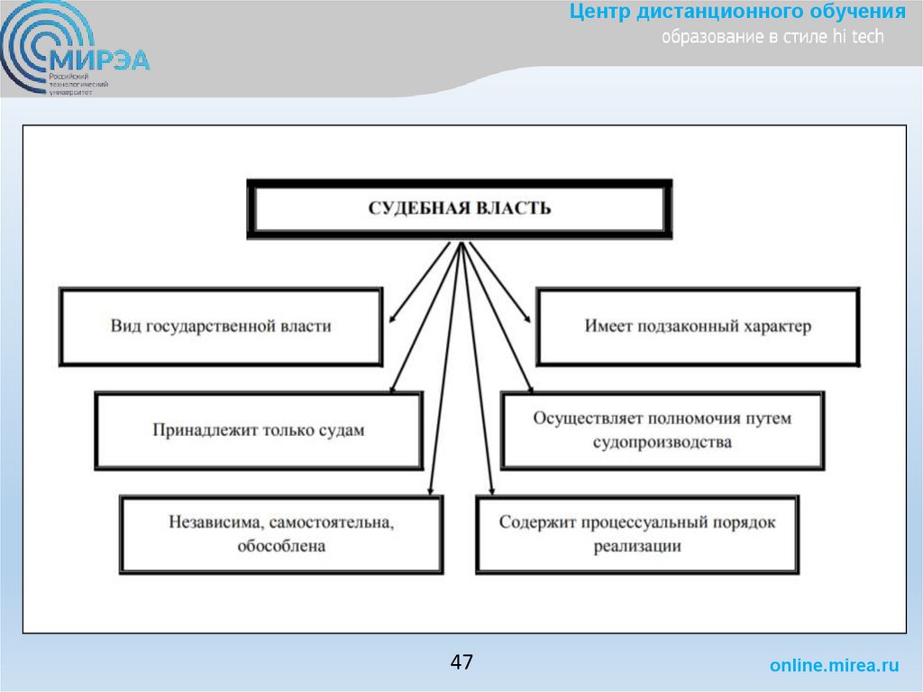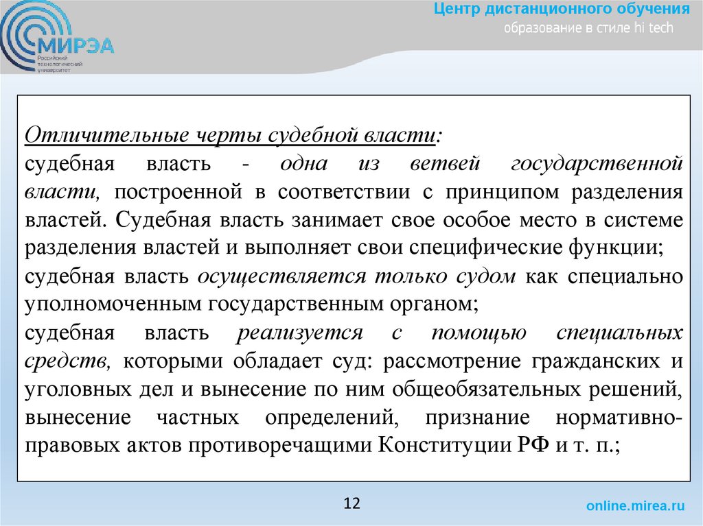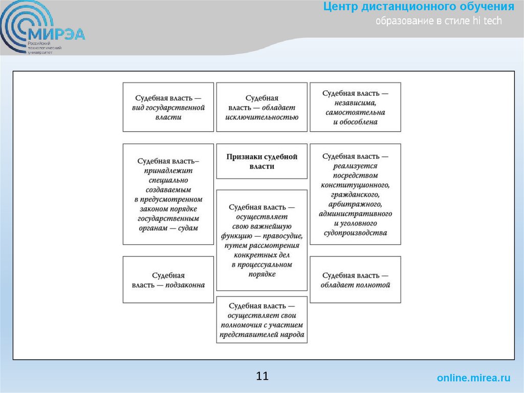 Центр дистанционного обученияОтличительные черты судебной власти:
