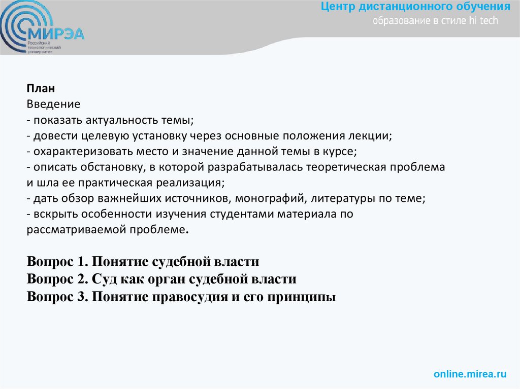 Центр дистанционного обучения• важнейший элемент судебной власти - это правосудие - деятельность судов по