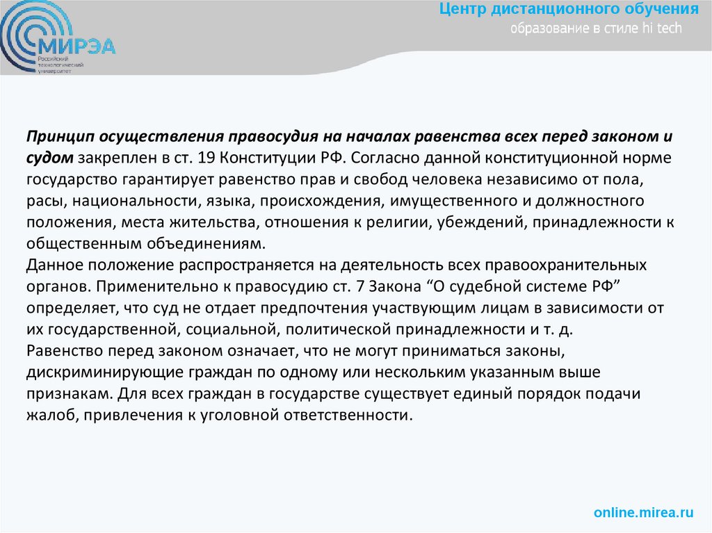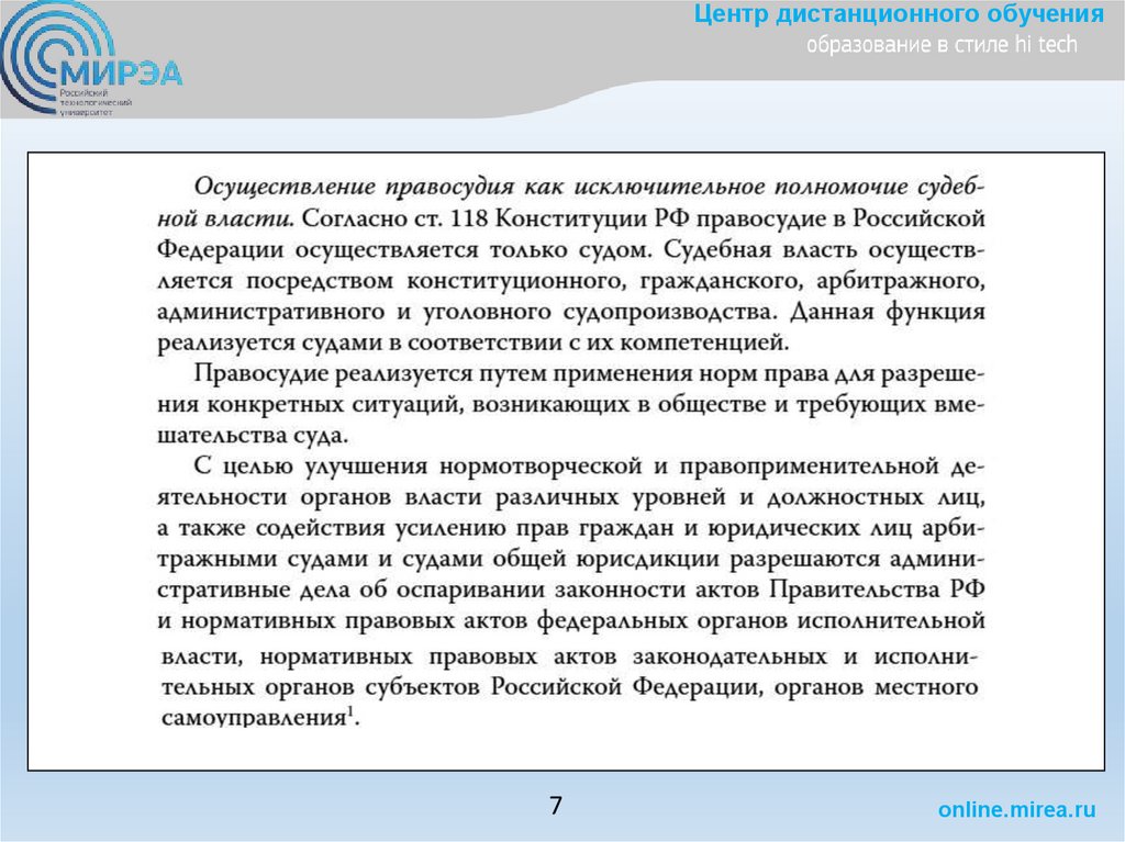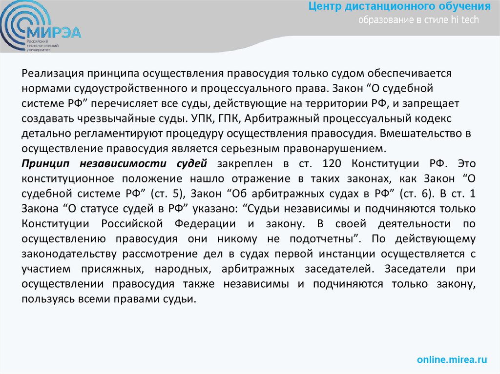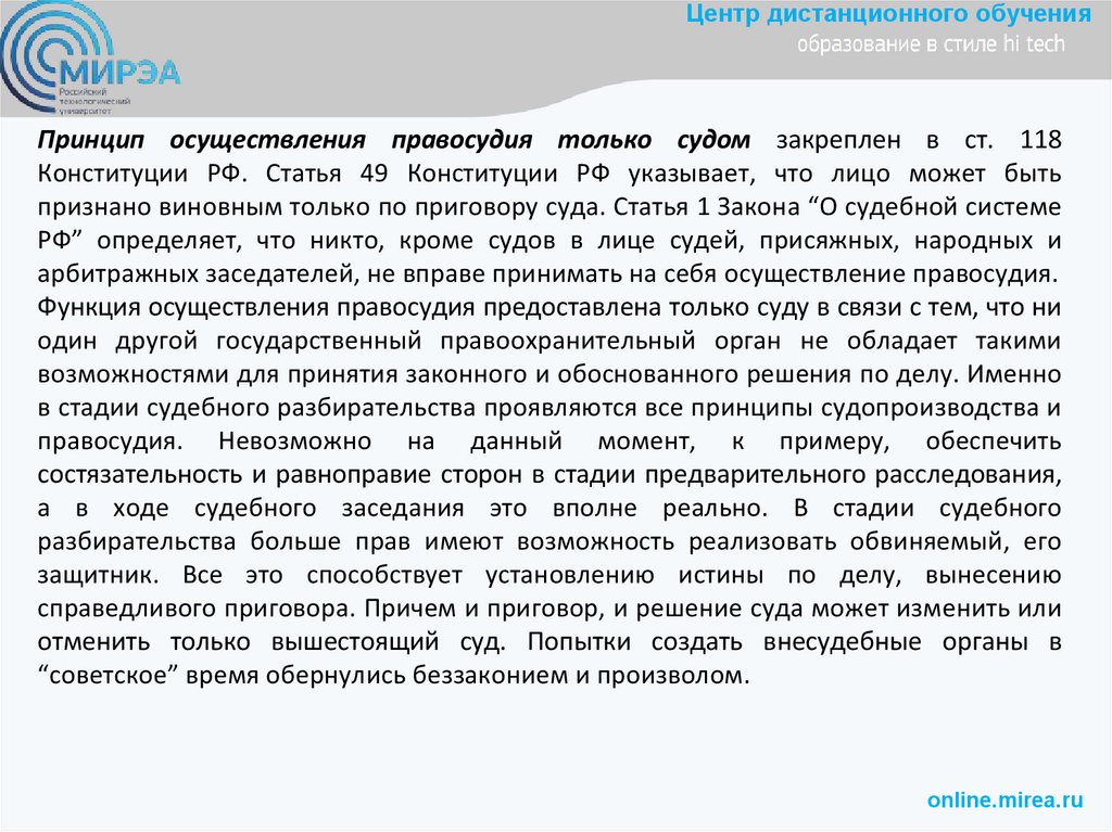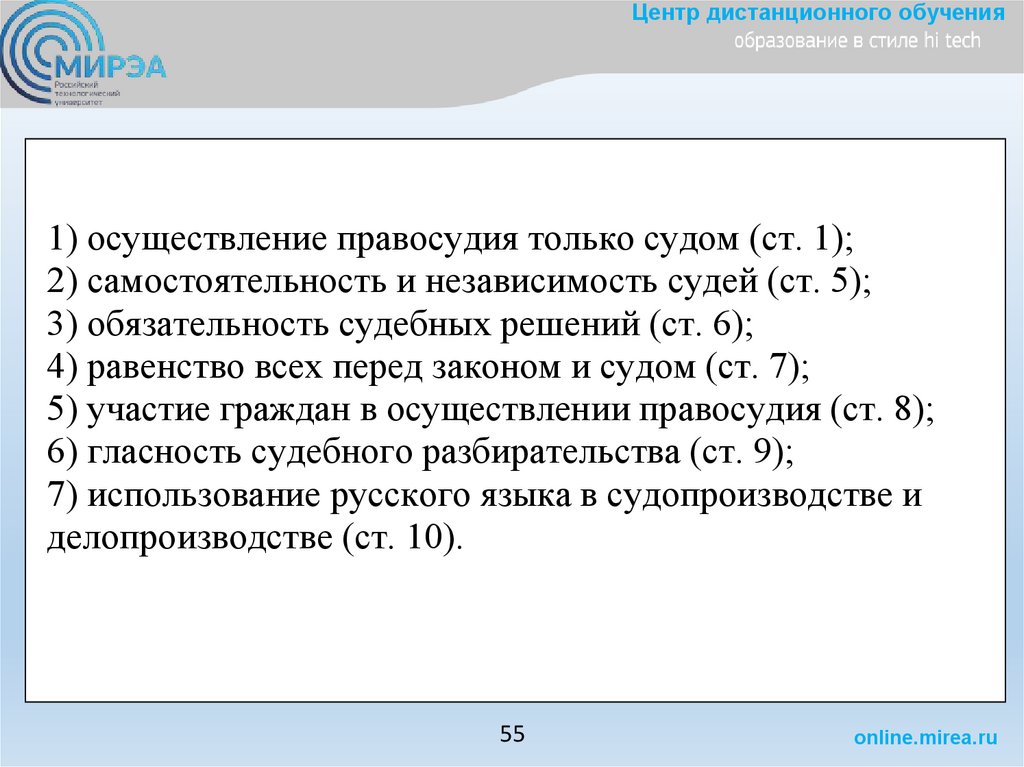 Центр дистанционного обучения1) осуществление правосудия только судом (ст. 1);