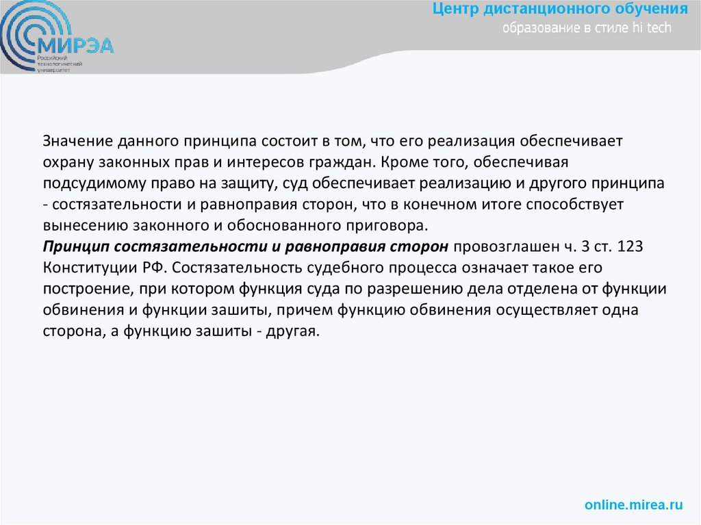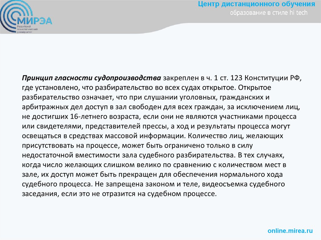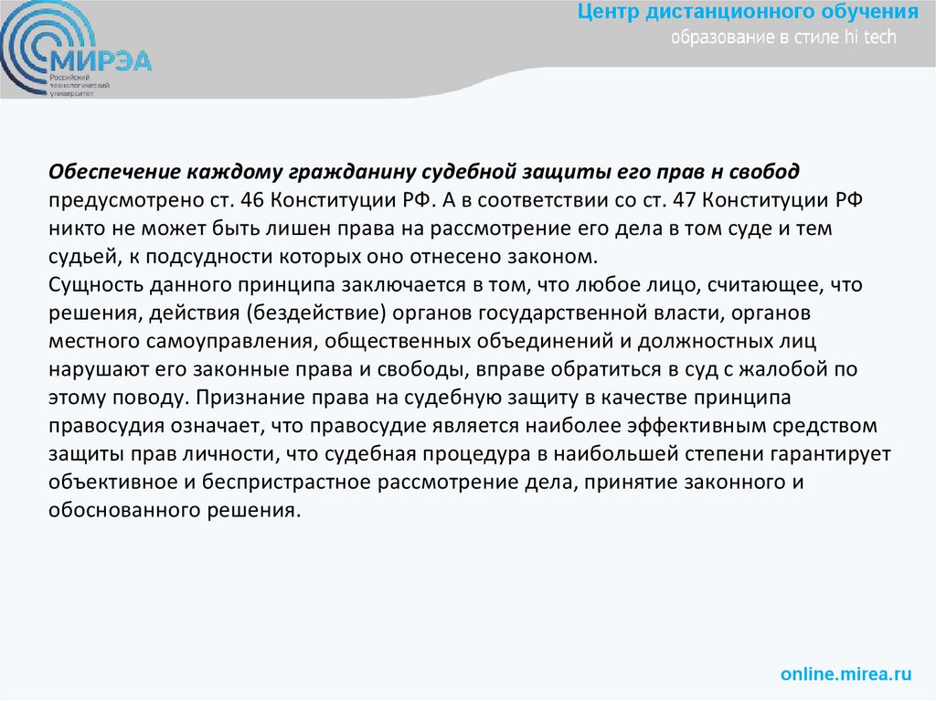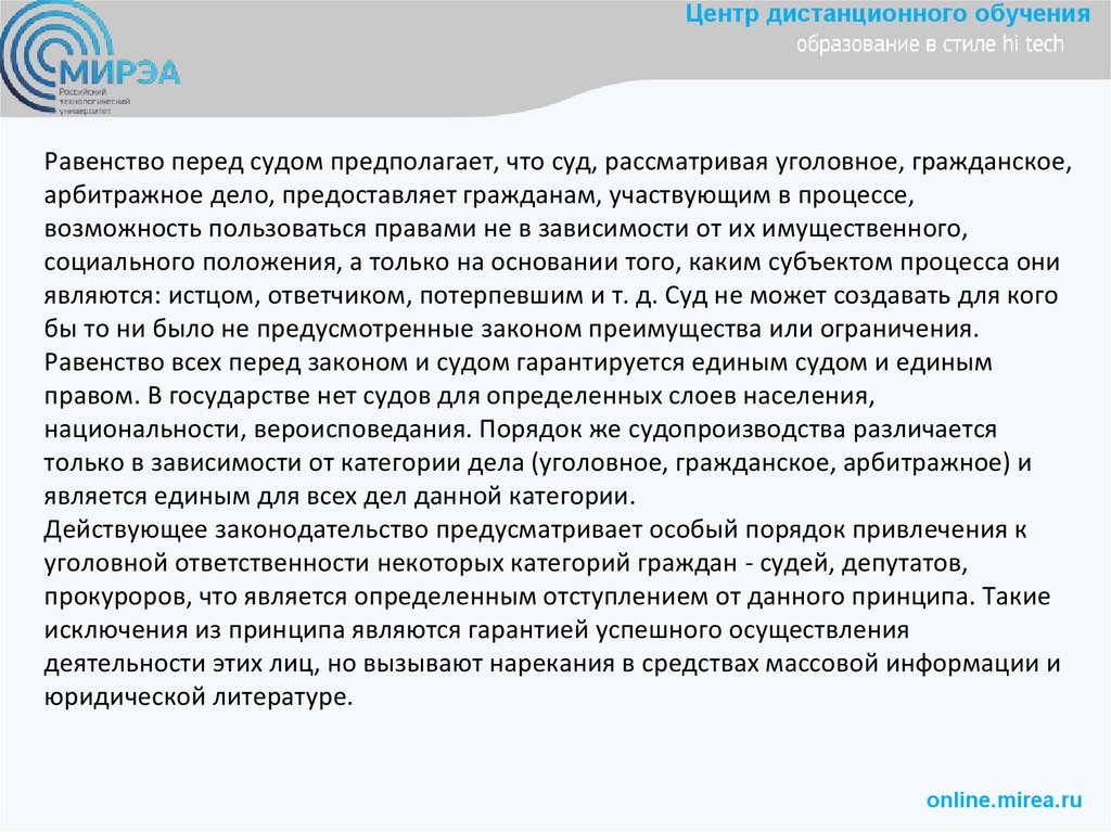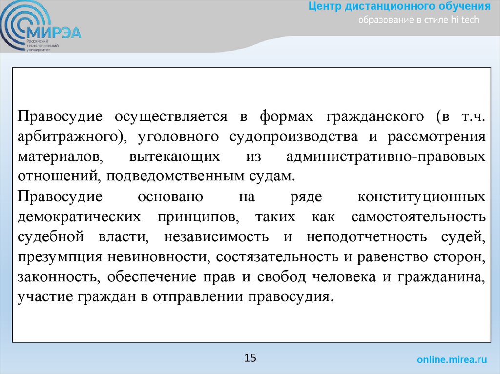 Центр дистанционного обучения1) осуществление правосудия только судом (ст. 1);