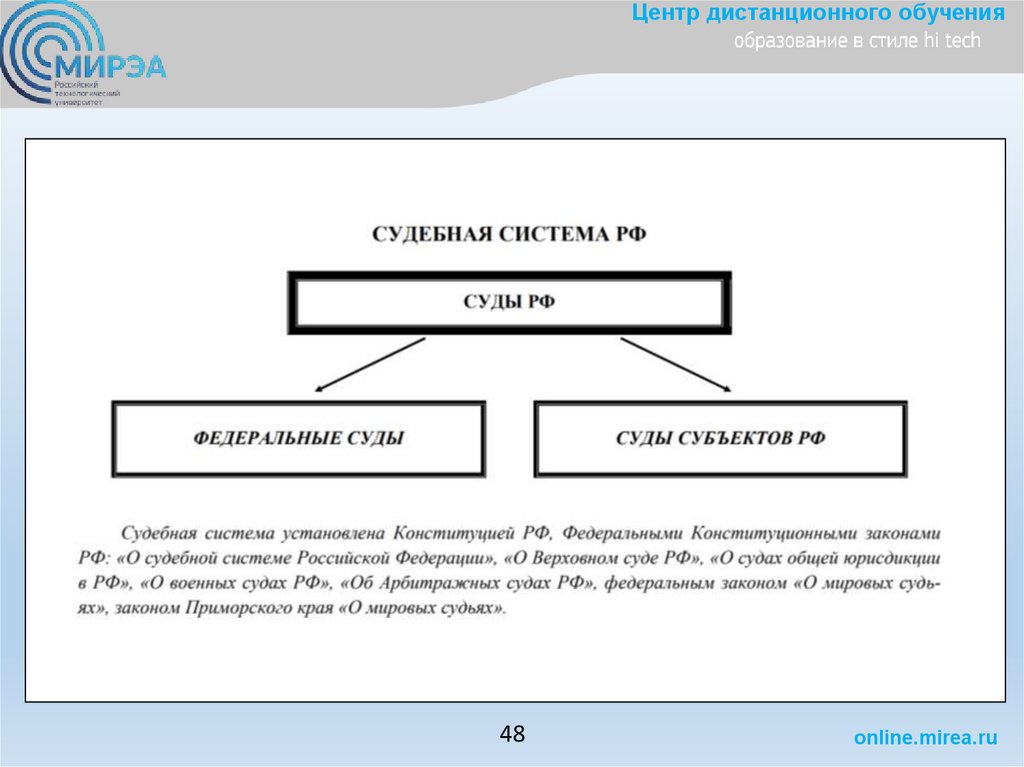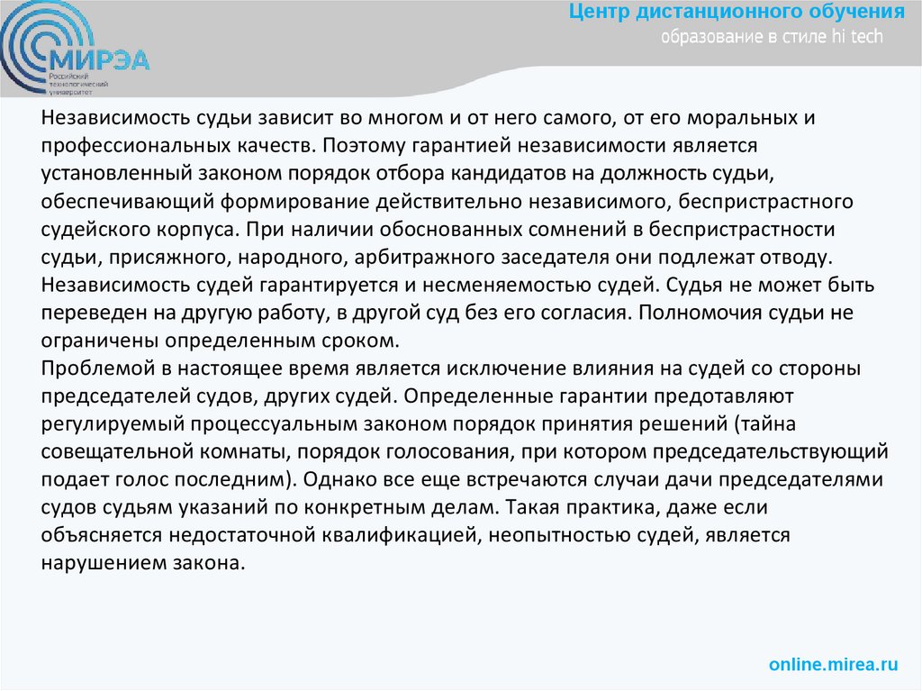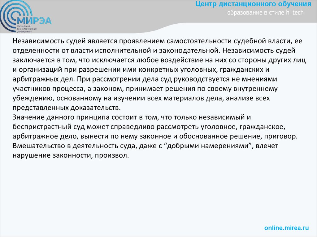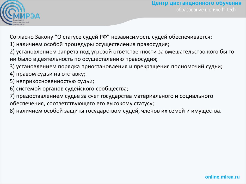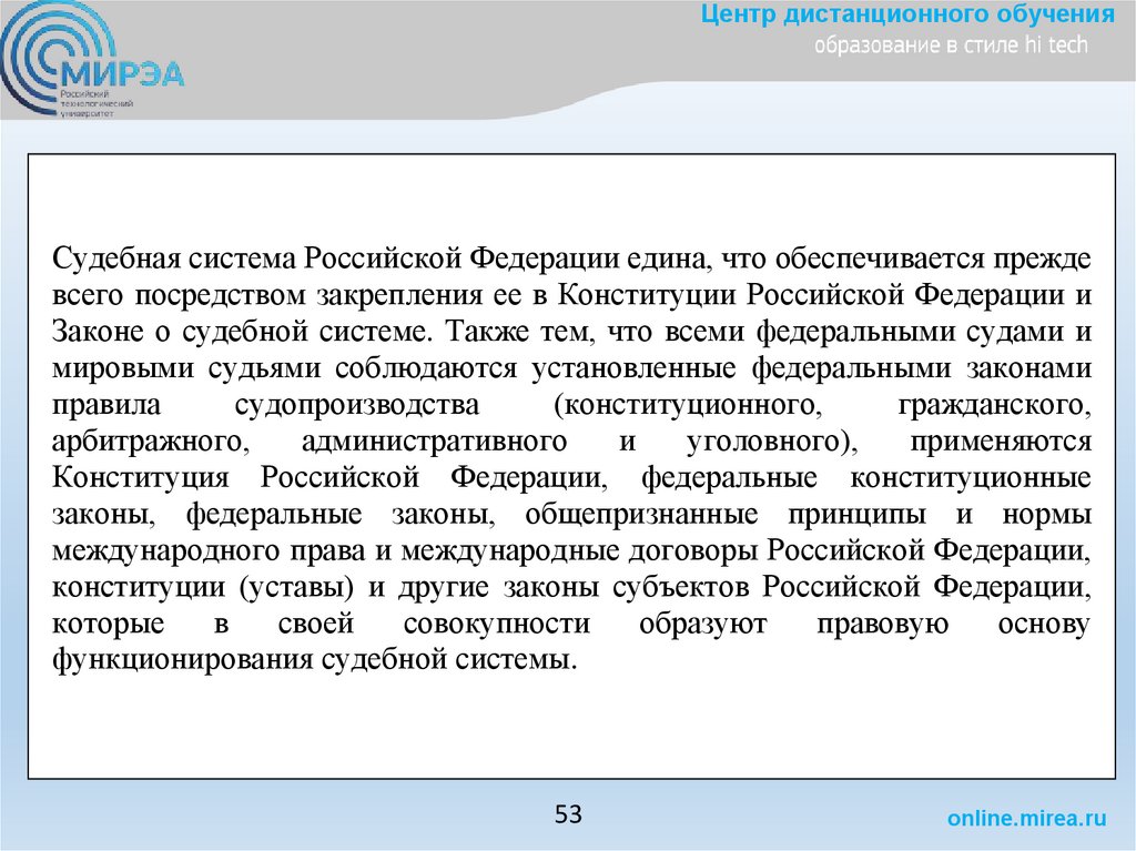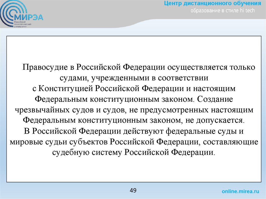 Центр дистанционного обученияПравосудие в Российской Федерации осуществляется только
