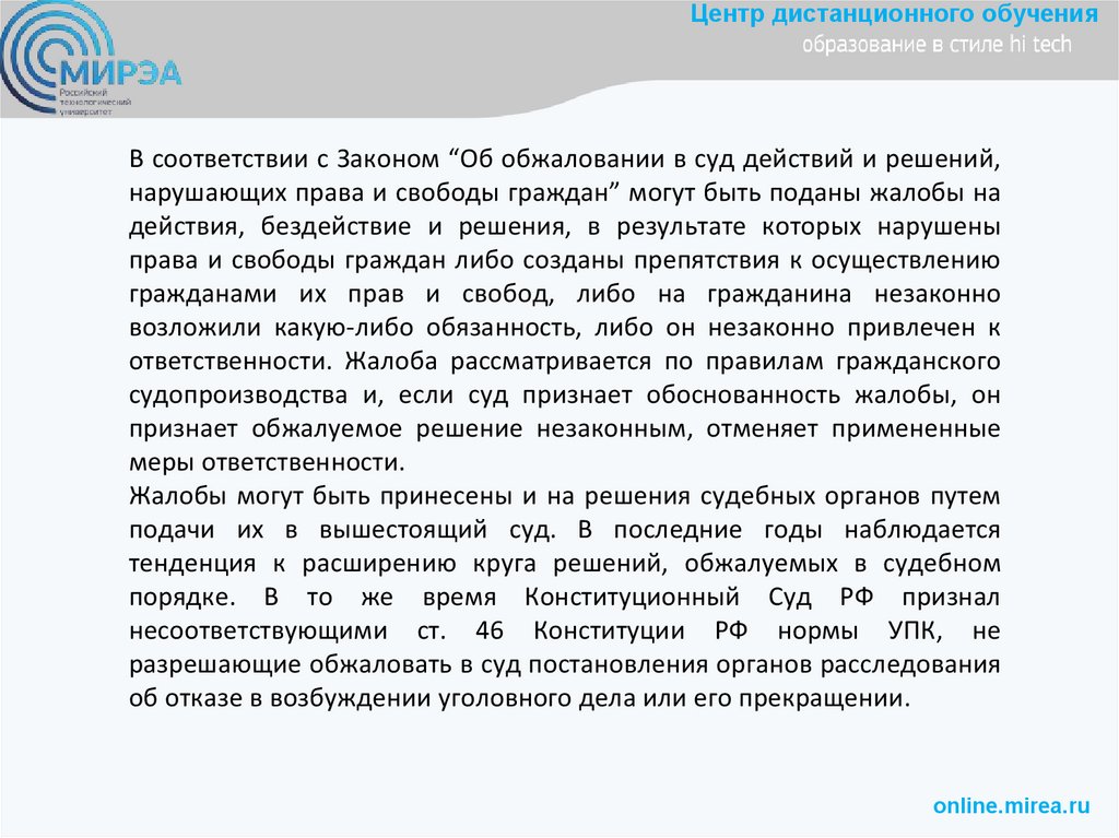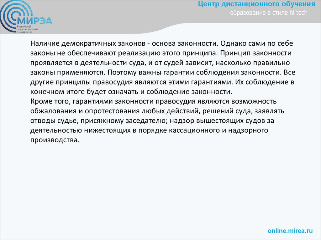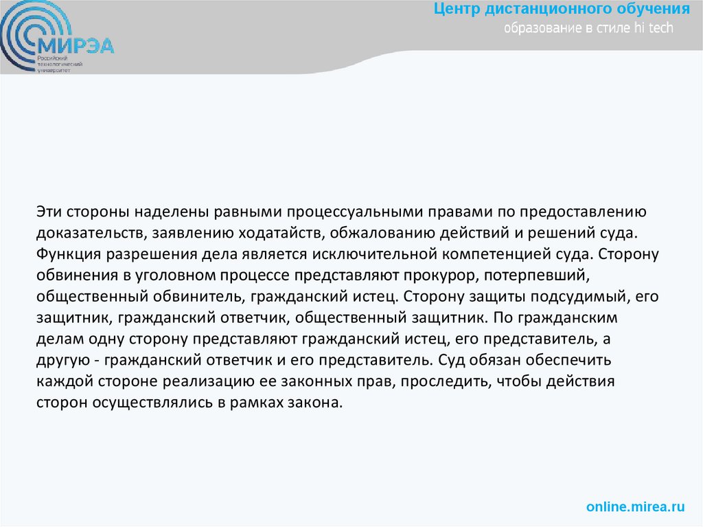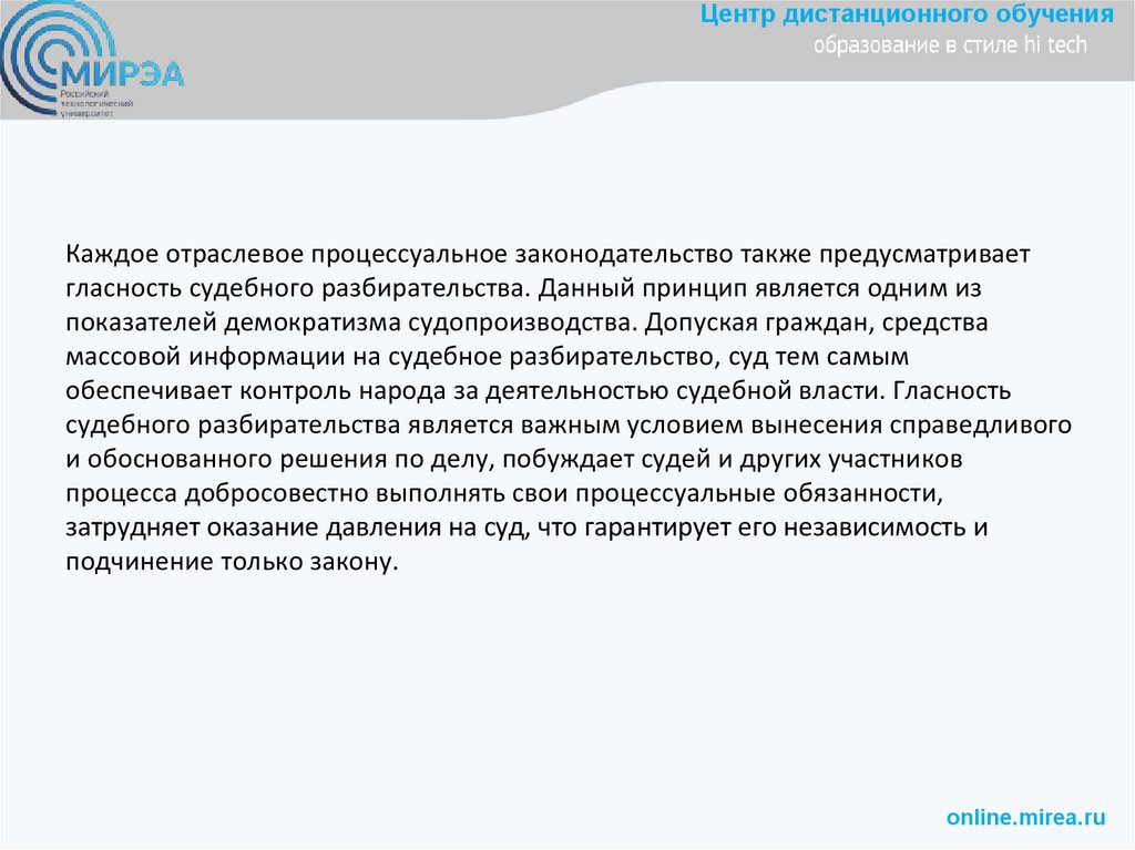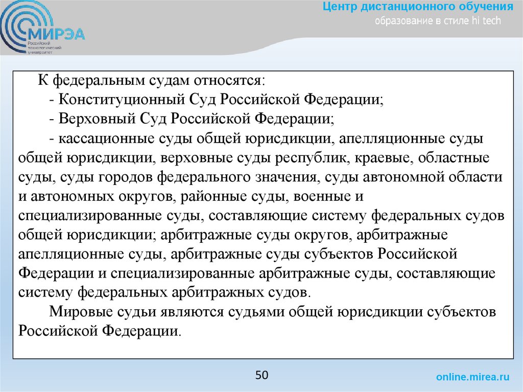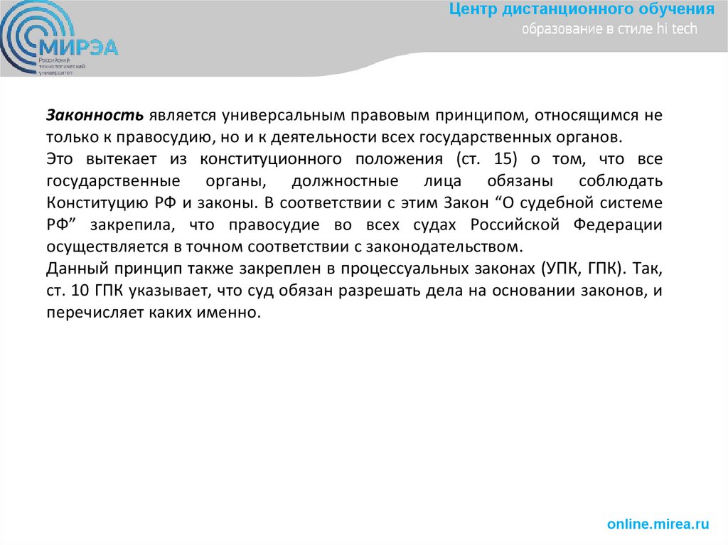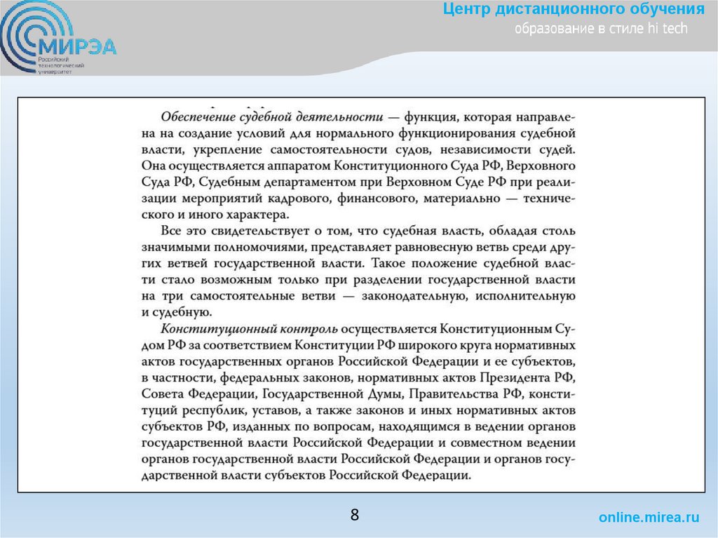 Центр дистанционного обученияПравосудие в Российской Федерации осуществляется только