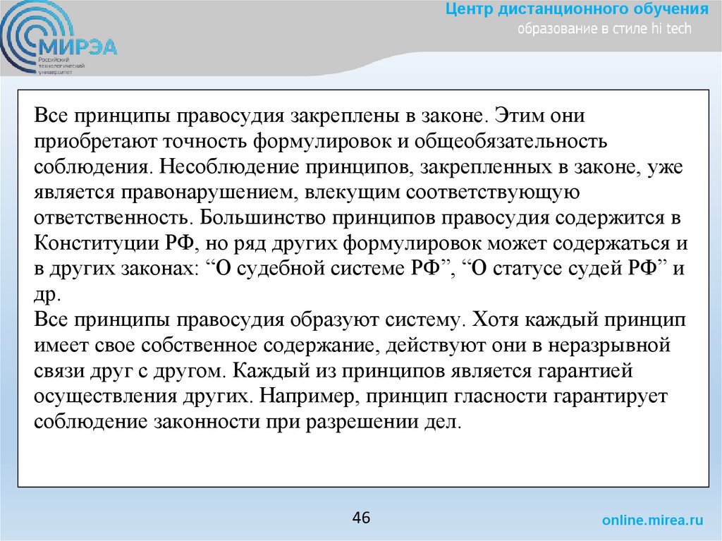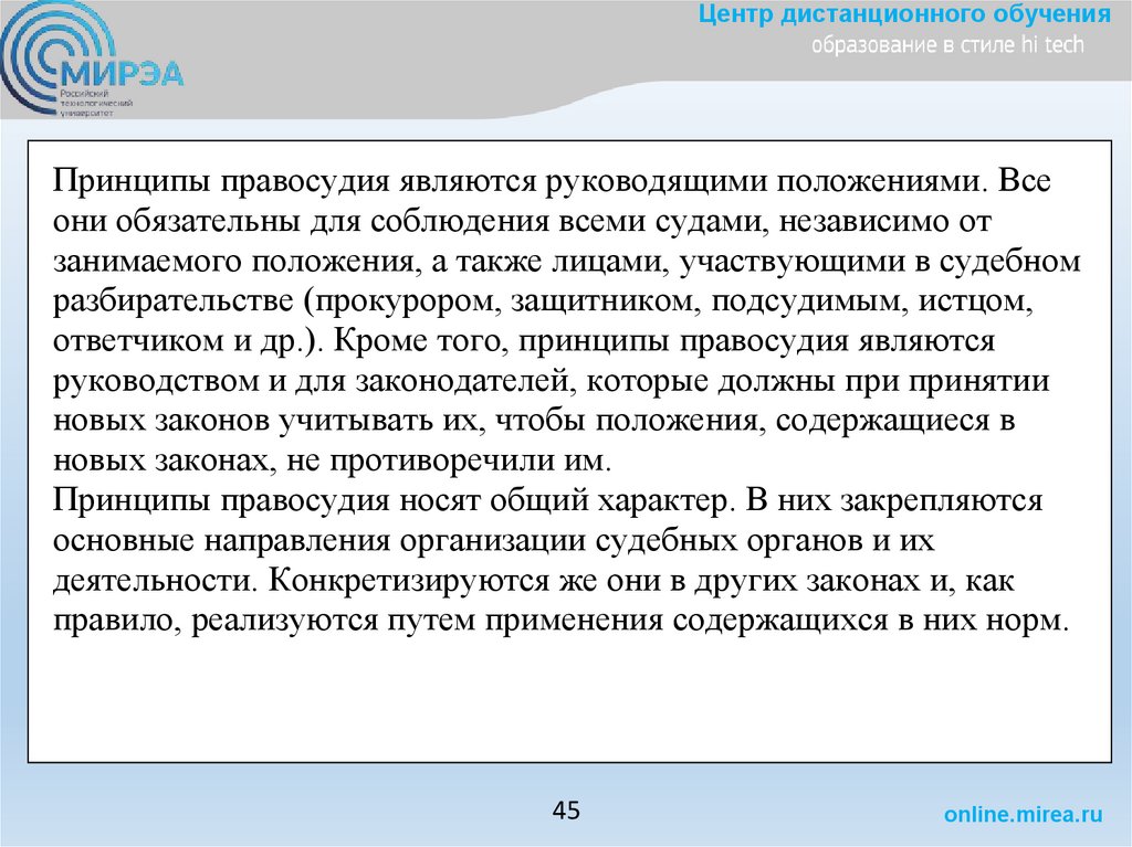 Все принципы правосудия образуют систему. Хотя каждый принцип