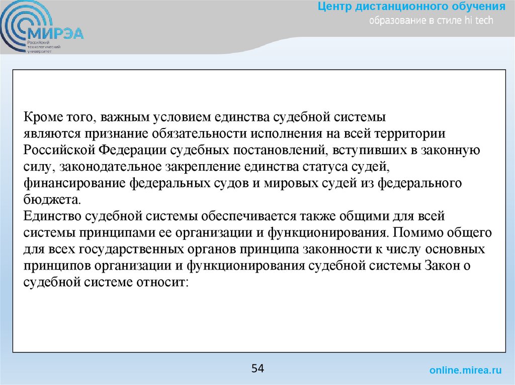 Центр дистанционного обученияКроме того, важным условием единства судебной системы