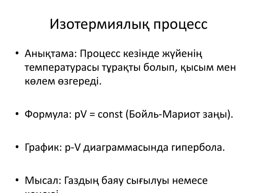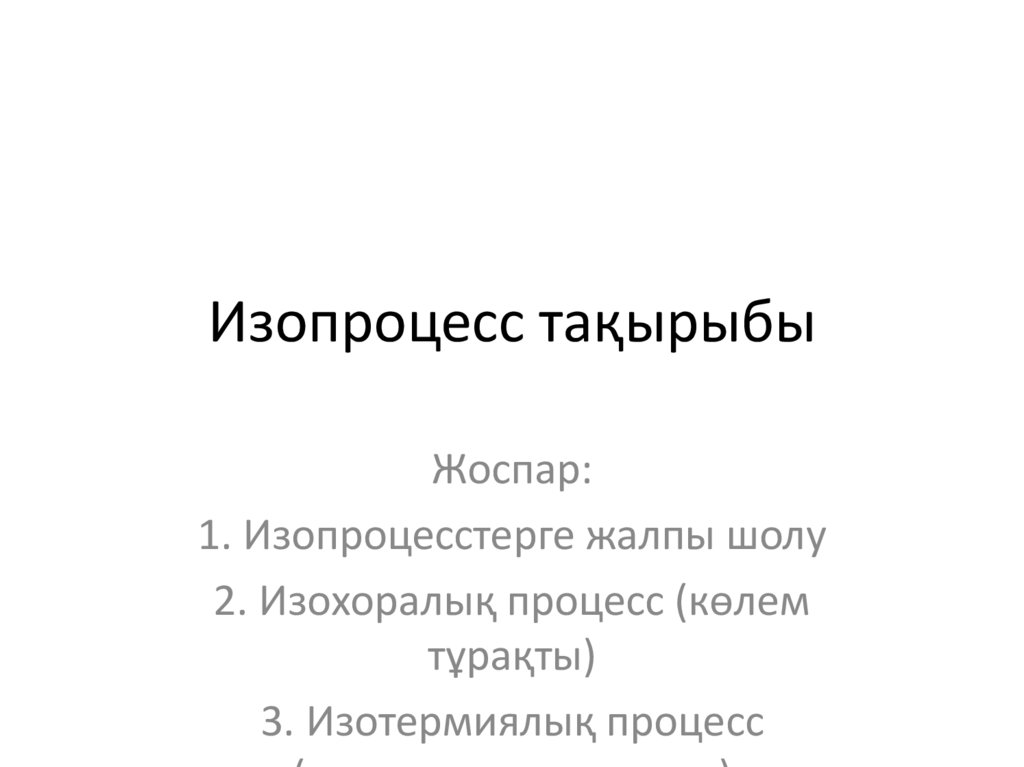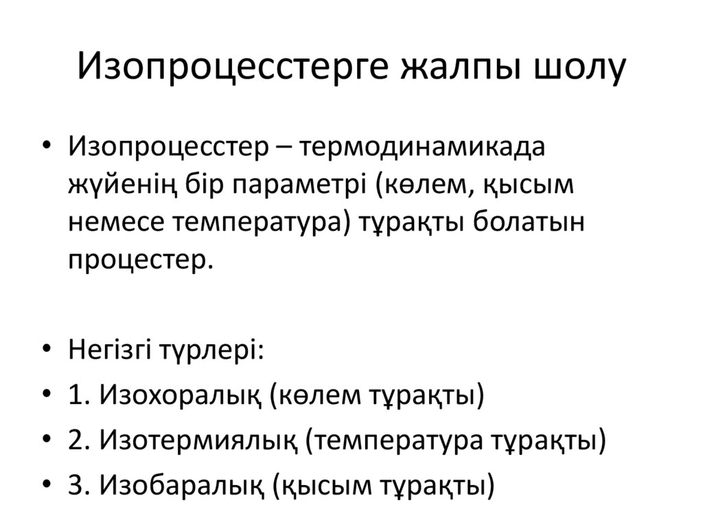 Изопроцесстерге жалпы шолу• Изопроцесстер – термодинамикада