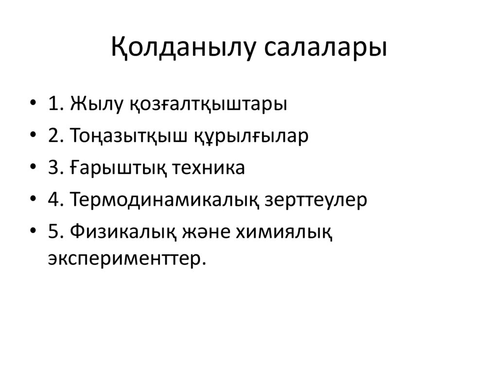 Қолданылу салалары• 1. Жылу қозғалтқыштары