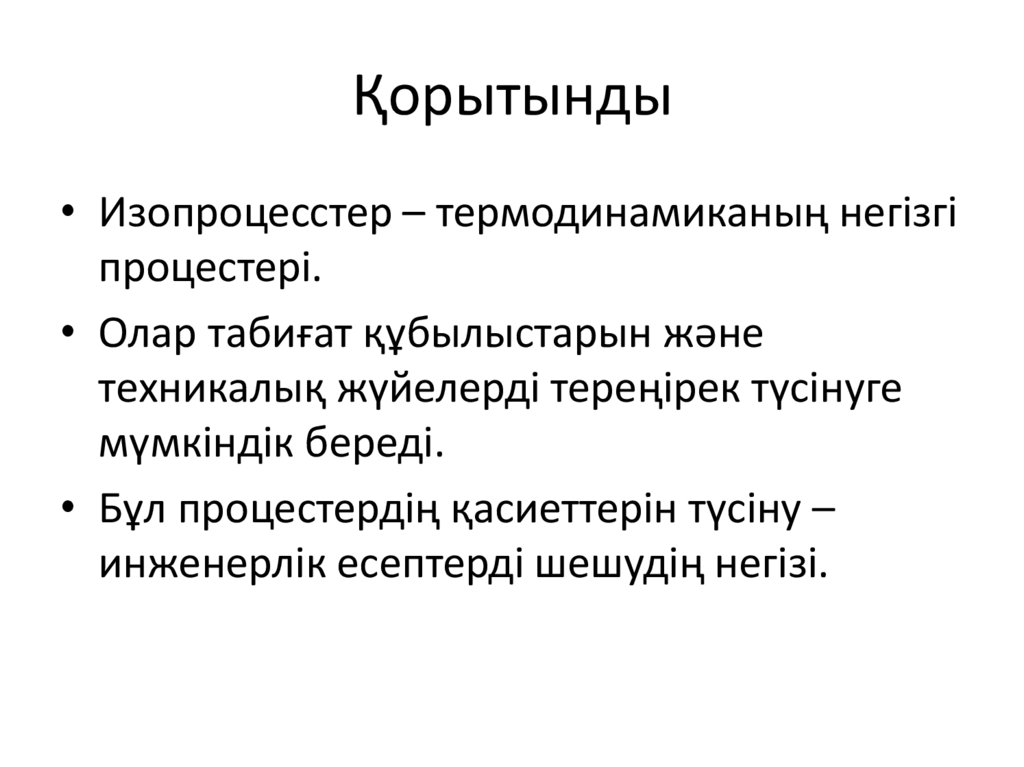 Қорытынды• Изопроцесстер – термодинамиканың негізгі