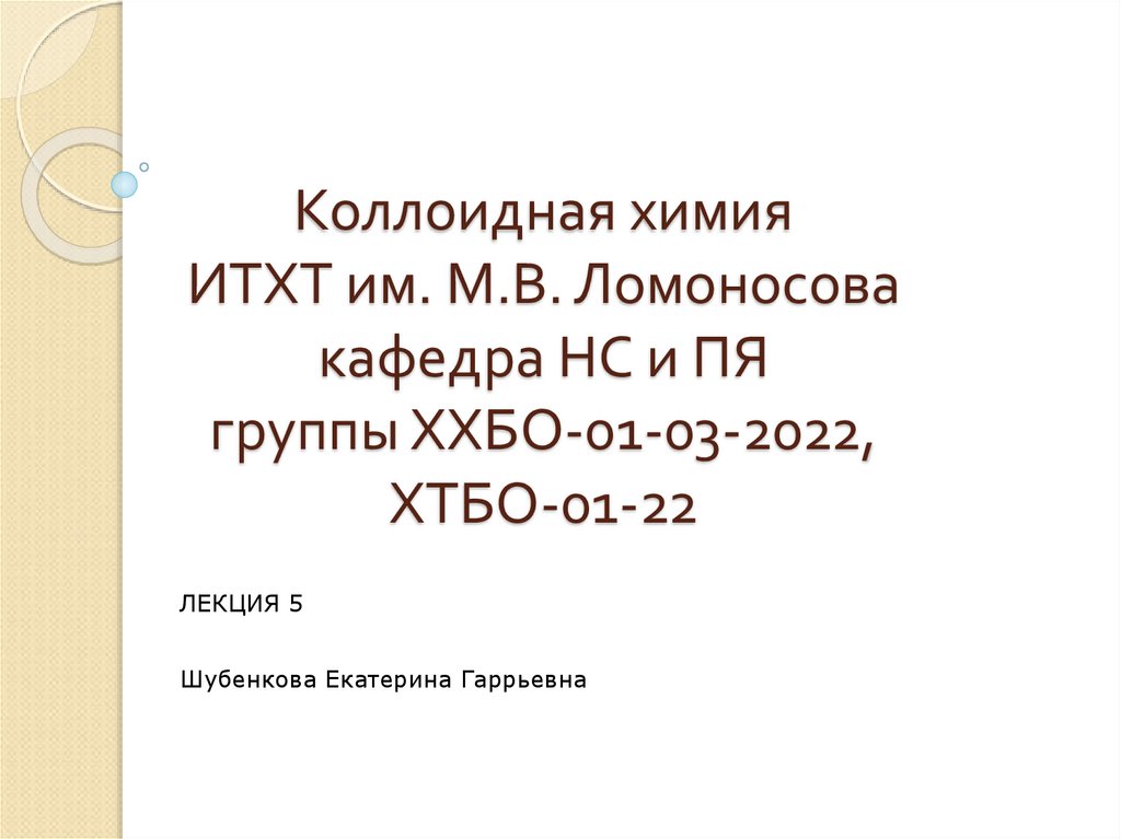 1. Коллоидная химия ИТХТ им. М.В. Ломоносова кафедра НС и ПЯ группы ХХБО-01-03-2022, ХТБО-01-22