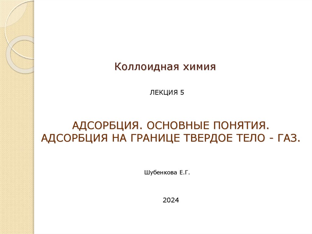 Коллоидная химия. Адсорбция. Основные понятия (лекция 5)