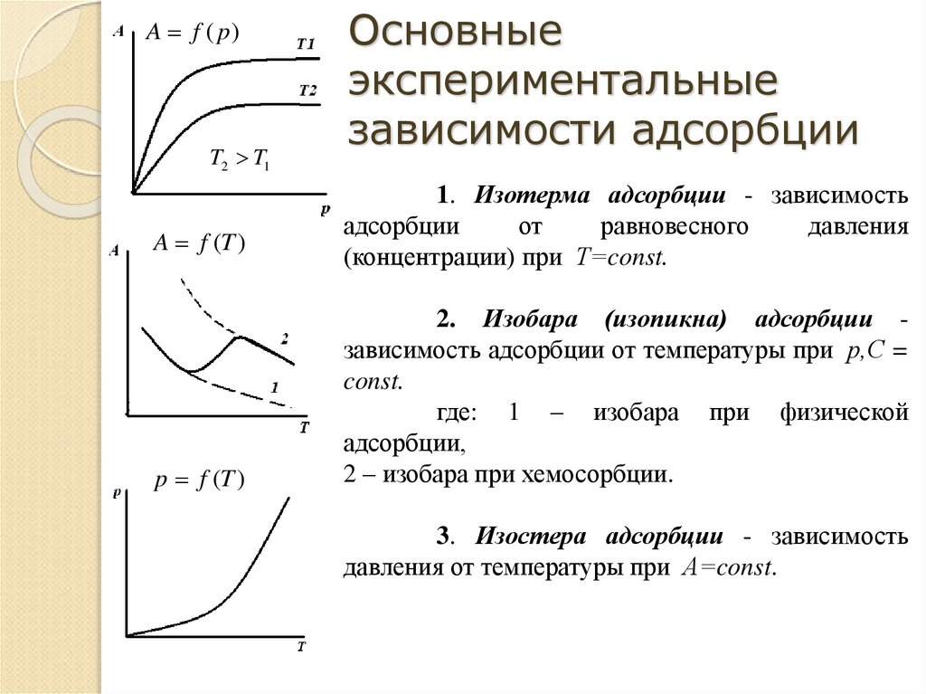 P = f (T) или C = f (T) при А = const изостера адсорбции.