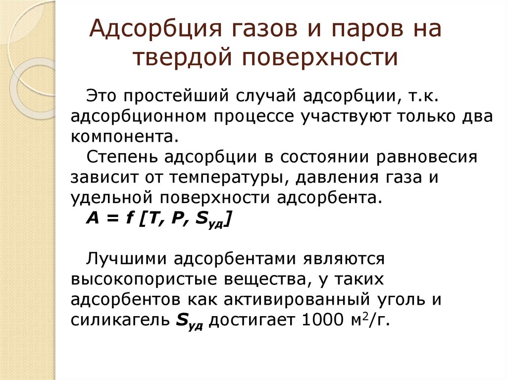 АДСОРБЦИЯ НА ГРАНИЦЕ ТВЕРДОЕ ТЕЛО - ГАЗ.