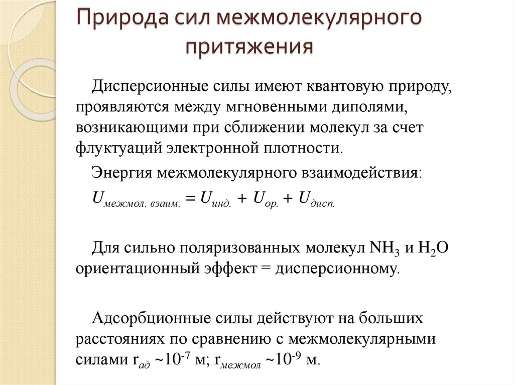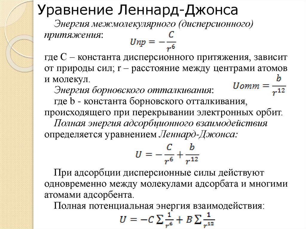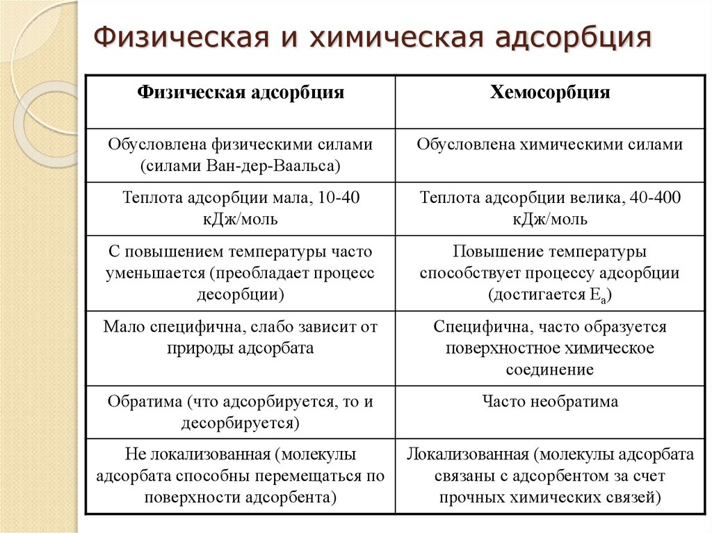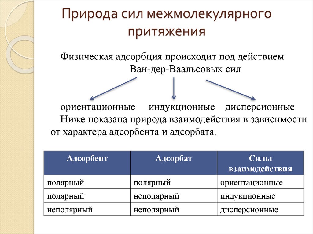 и хемосорбции. Природа адсорбционных сил. Уравнение