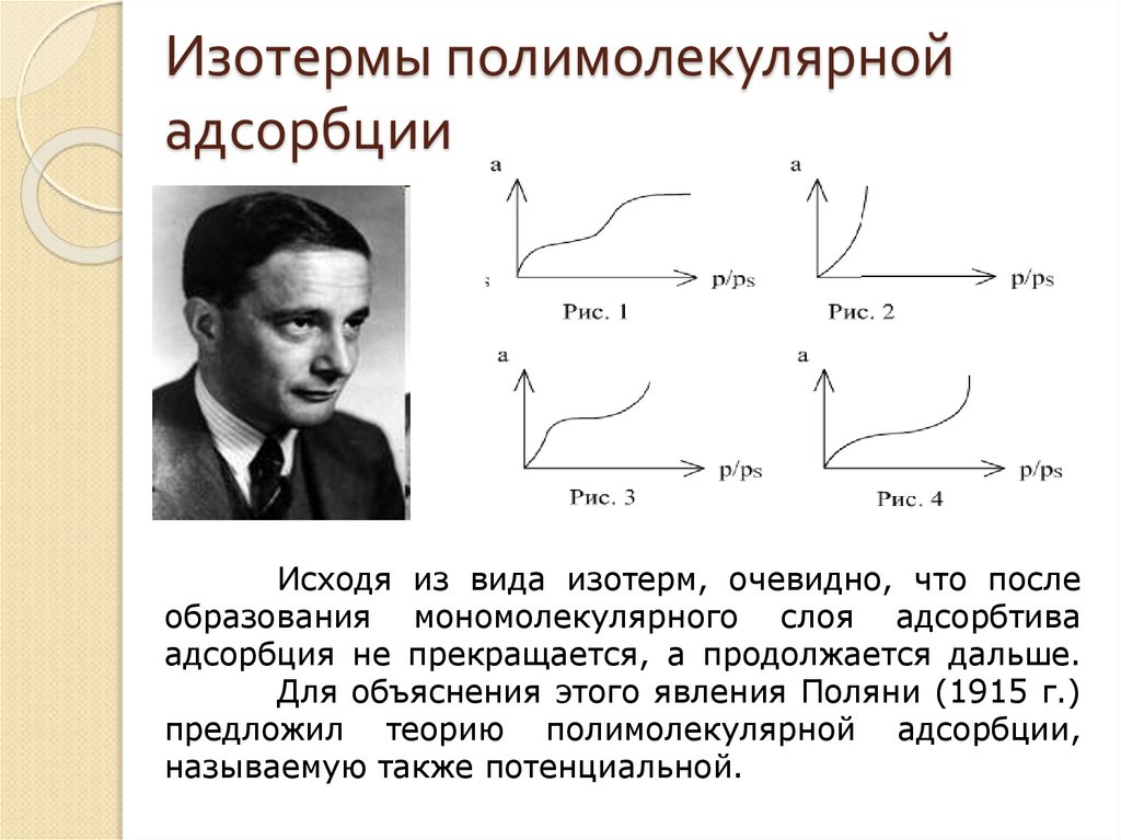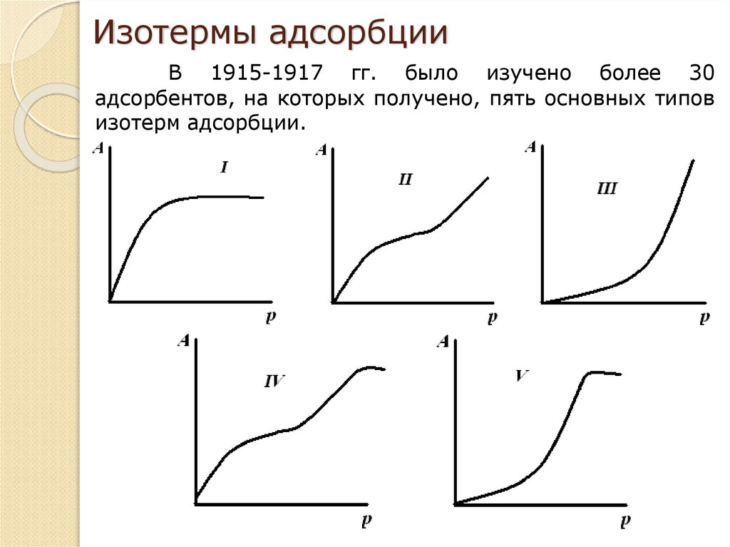 Исходя из вида изотерм, очевидно, что послеобразования мономолекулярного слоя адсорбтива