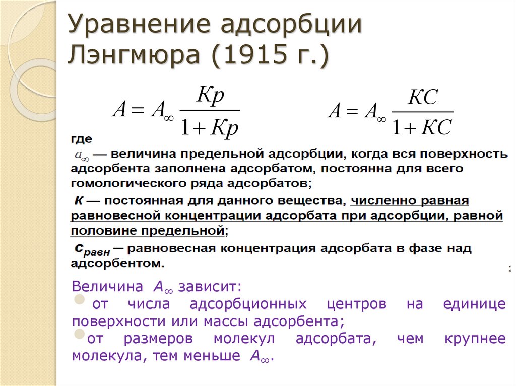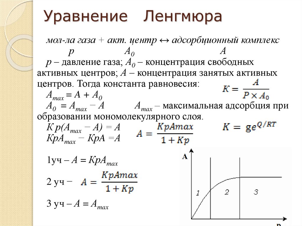 4. Теория мономолекулярной адсорбции Ленгмюра. Вывод