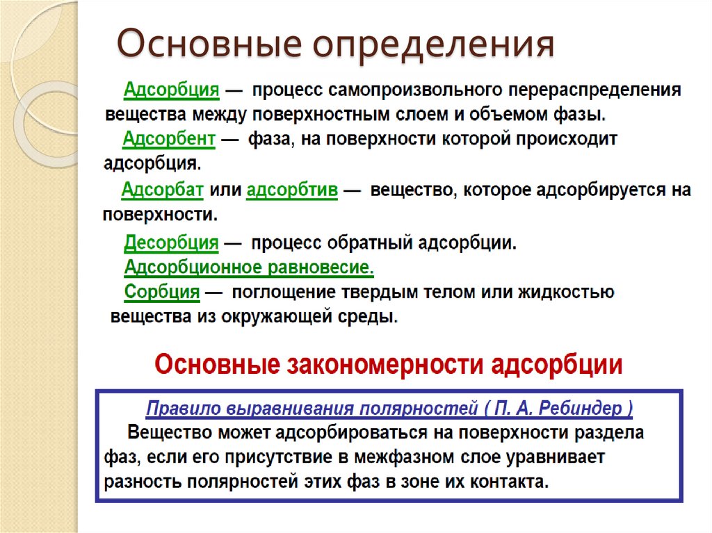 ЛЕКЦИЯ 5АДСОРБЦИЯ. ОСНОВНЫЕ ПОНЯТИЯ.