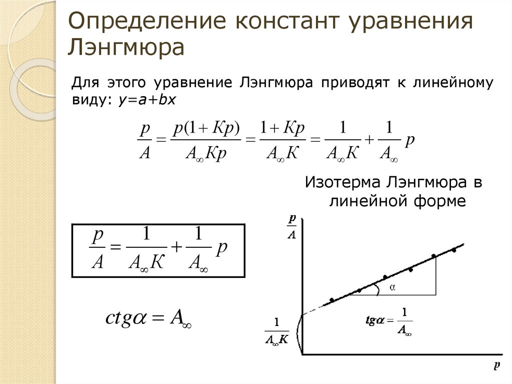 5. Линейная форма уравнения Ленгмюра. Нахождение