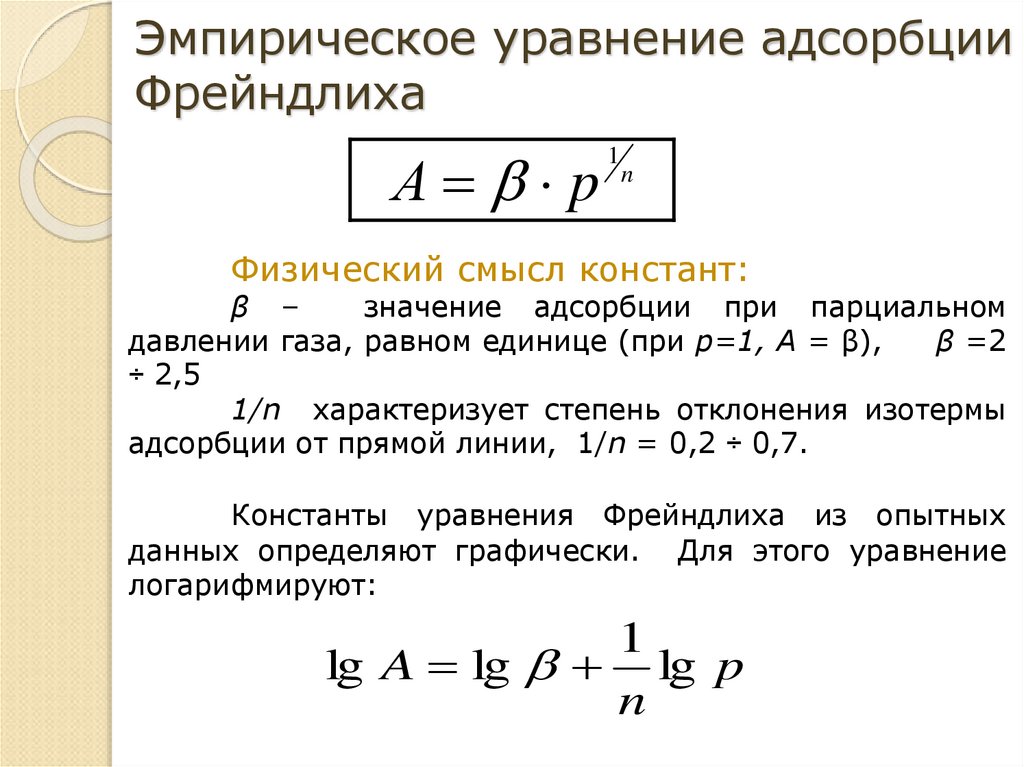Эмпирическое уравнение адсорбцииФрейндлиха