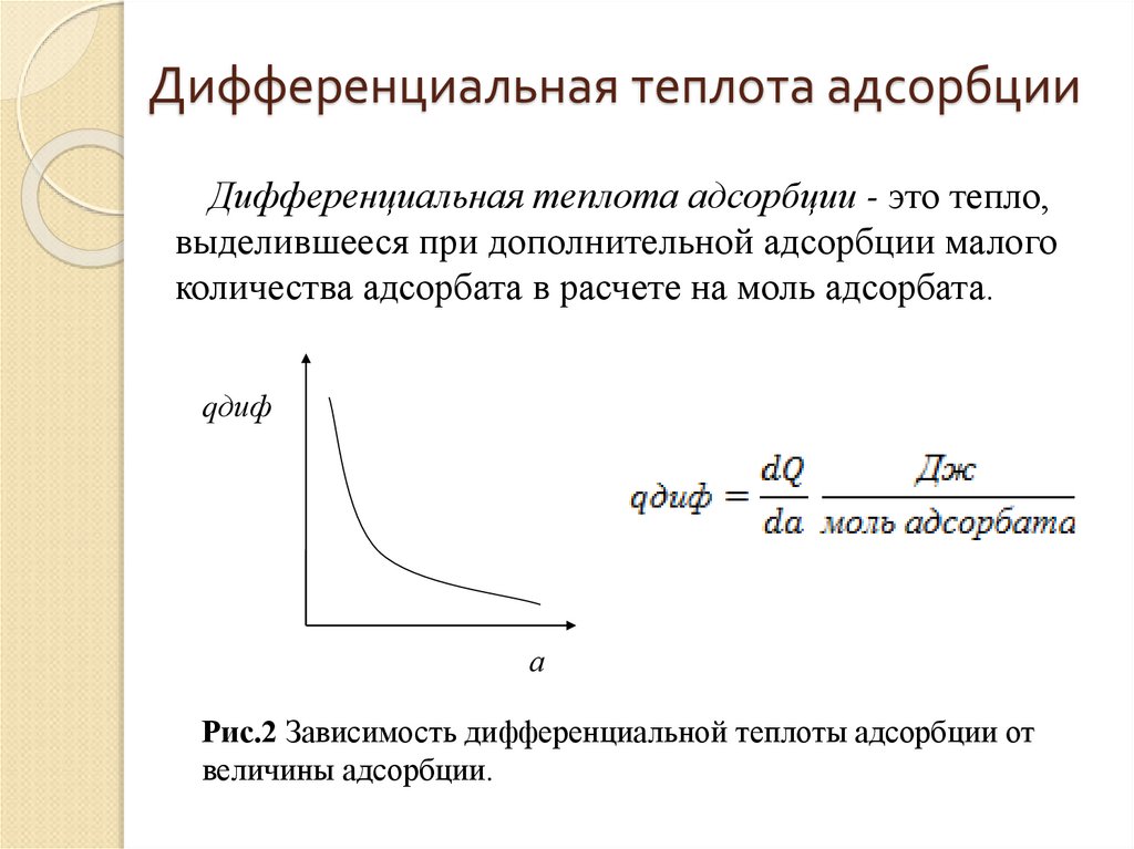 Дифференциальная теплота адсорбции - это тепло,выделившееся при дополнительной адсорбции малого