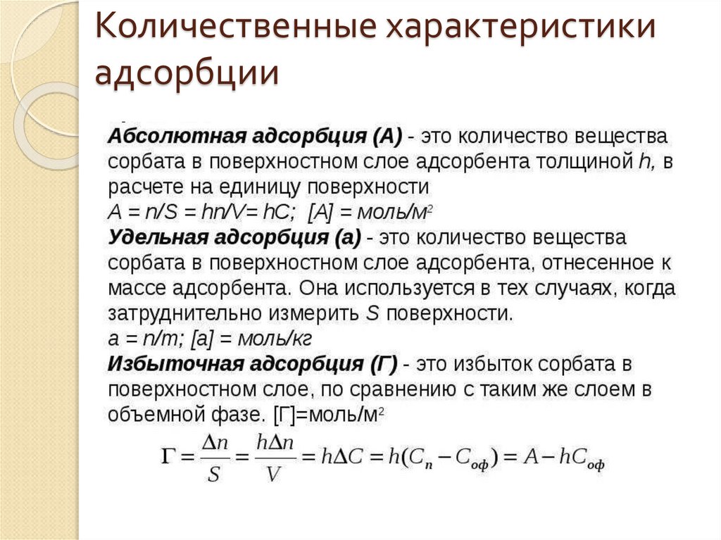 1. Понятие об адсорбции. Причины адсорбции.Количественные характеристики адсорбции.