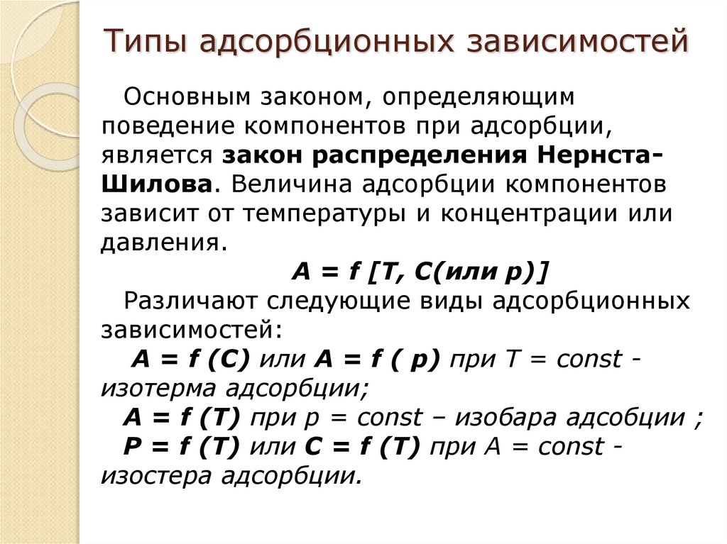 является закон распределения НернстаШилова. Величина адсорбции компонентов