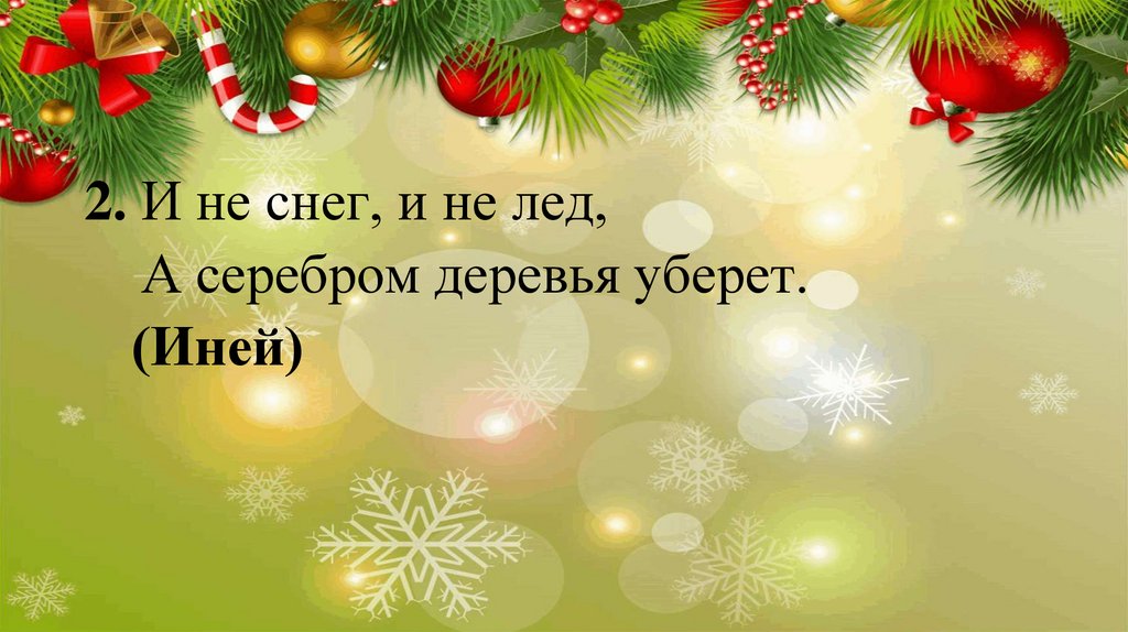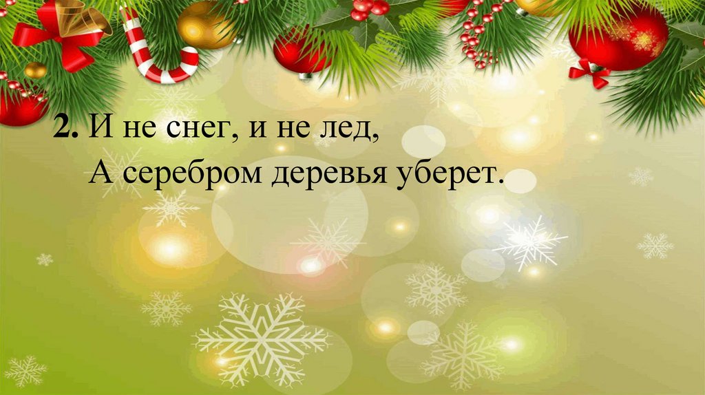 2. И не снег, и не лед,А серебром деревья уберет.