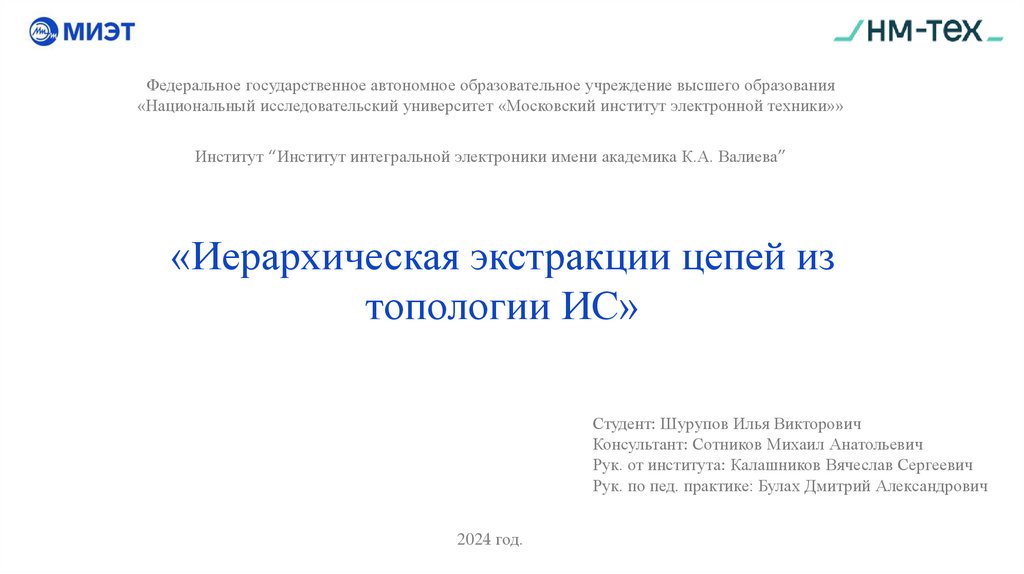 Федеральное государственное автономное образовательное учреждение высшего образования«Национальный исследовательский университет «Московский институт электронной техники»»
