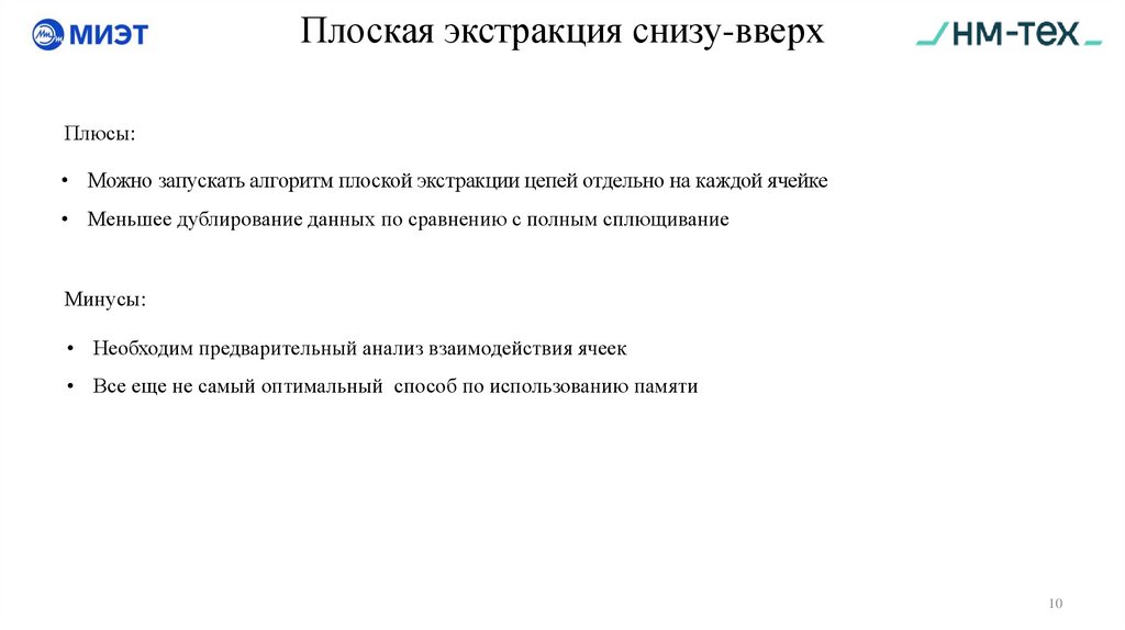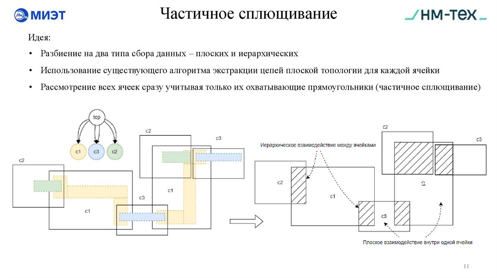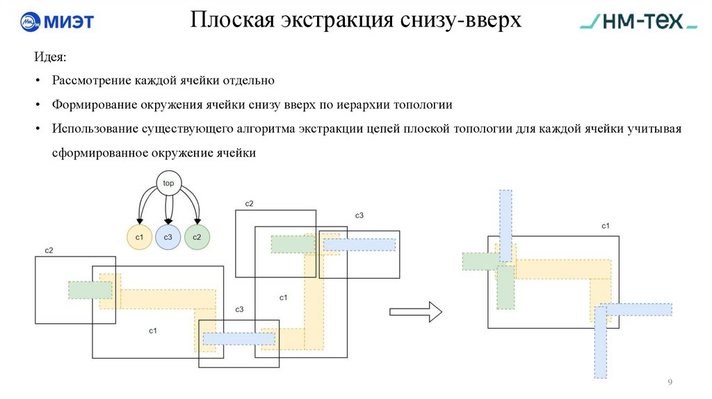 • Можно запускать алгоритм плоской экстракции цепей отдельно на каждой ячейке