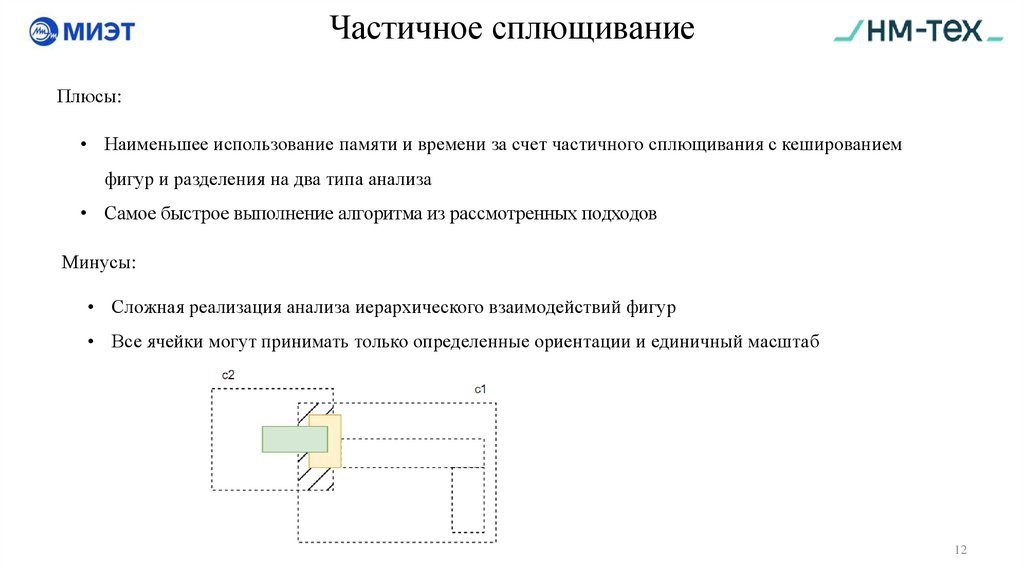 • Рассмотрение всех ячеек сразу учитывая только их охватывающие прямоугольники (частичное сплющивание)