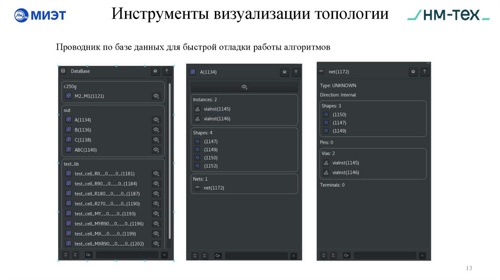 Инструменты визуализации топологииПроводник по базе данных для быстрой отладки работы алгоритмов