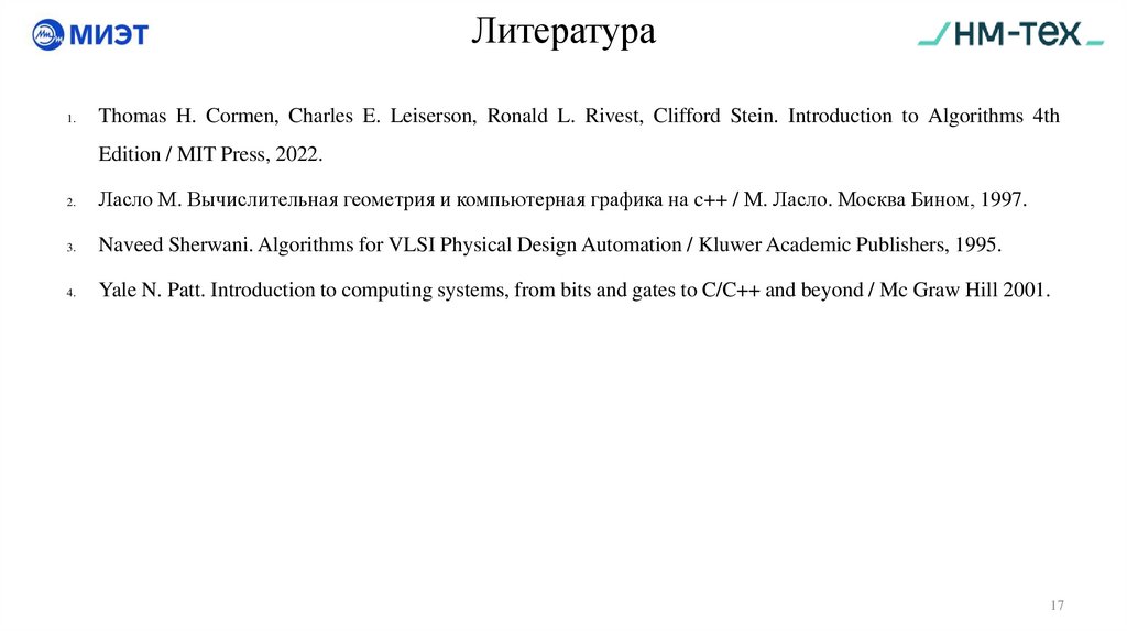 Naveed Sherwani. Algorithms for VLSI Physical Design Automation / Kluwer Academic Publishers, 1995.