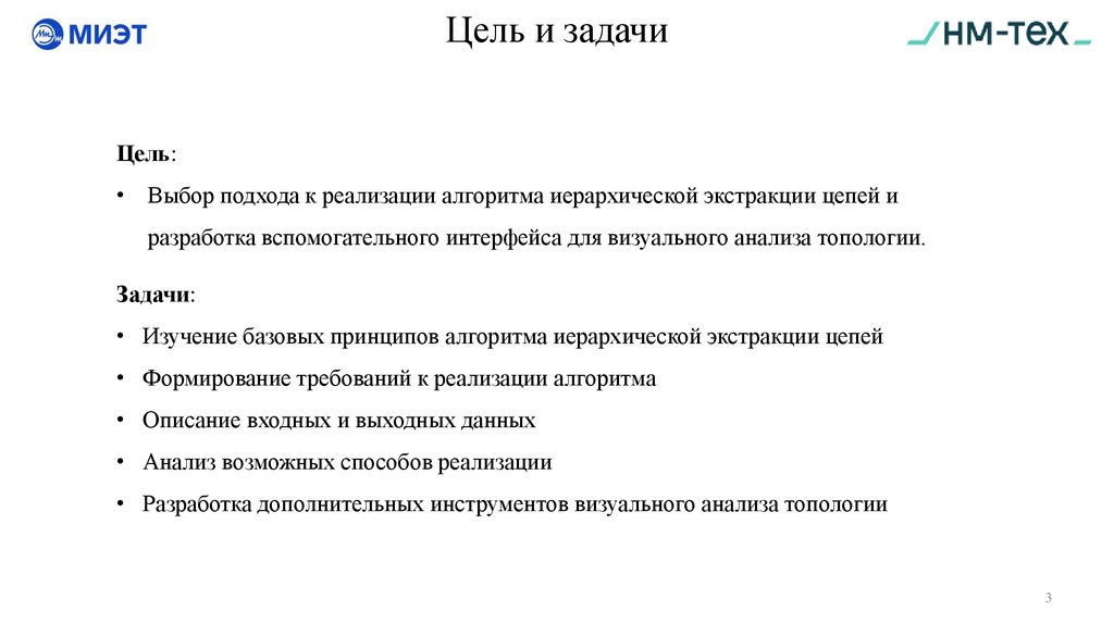• Изучение базовых принципов алгоритма иерархической экстракции цепей