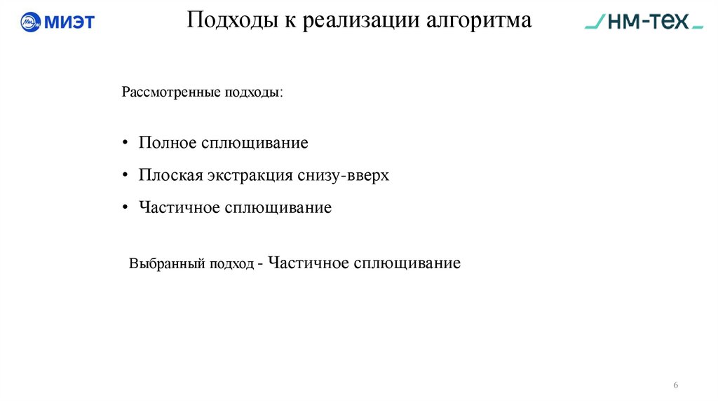 Подходы к реализации алгоритмаРассмотренные подходы: