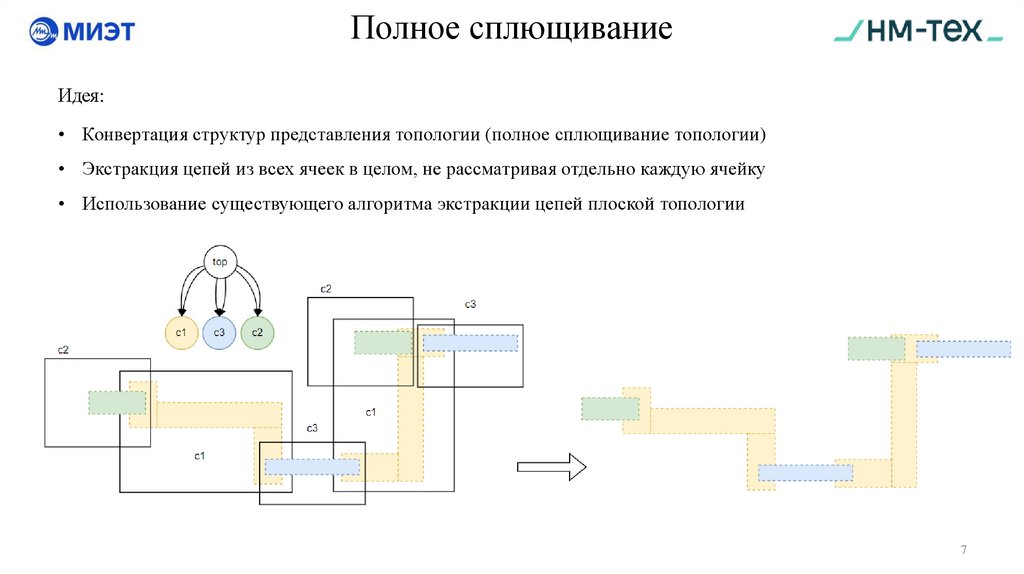 • Использование существующего алгоритма экстракции цепей плоской топологии для каждой ячейки учитывая
