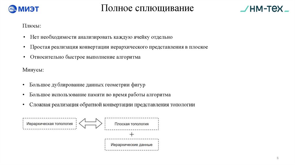• Конвертация структур представления топологии (полное сплющивание топологии)